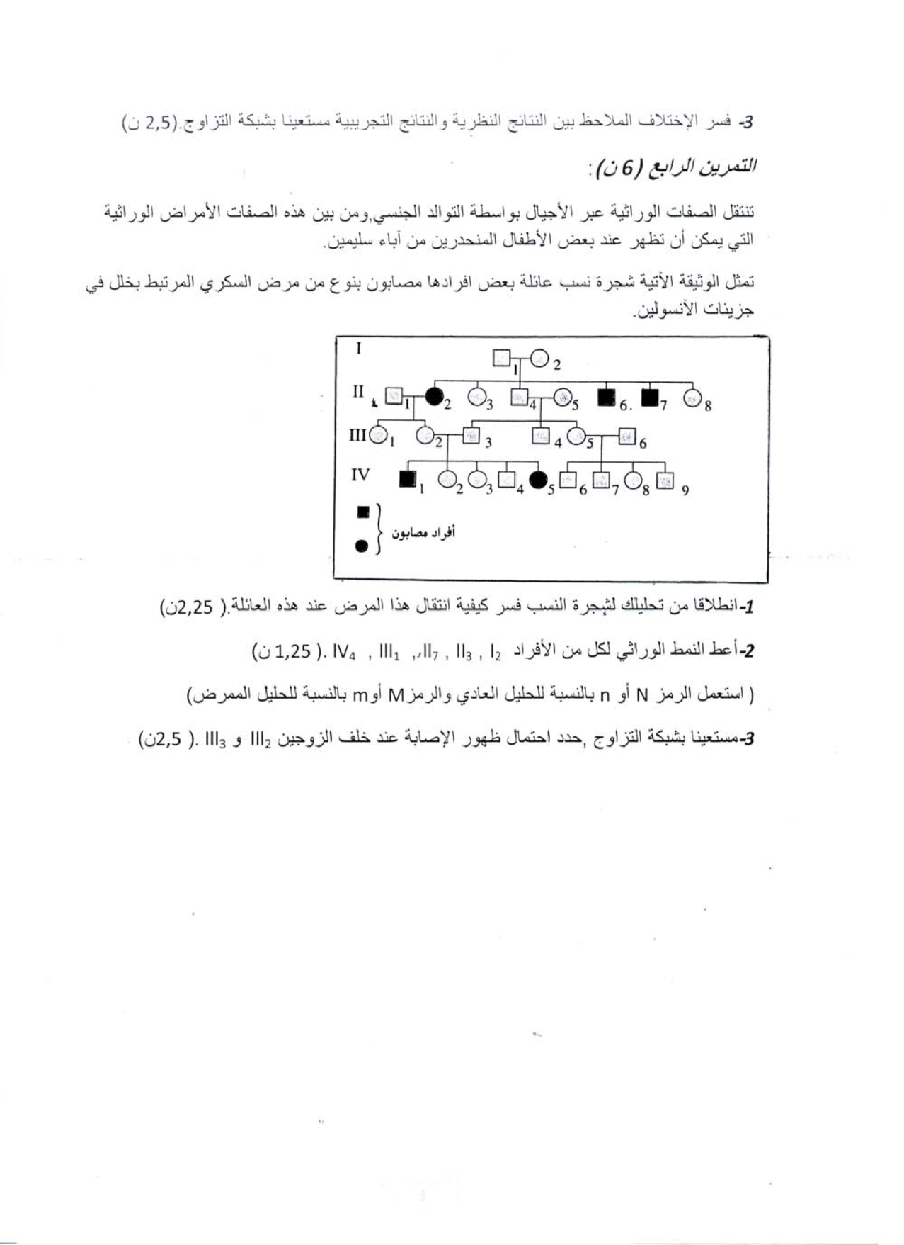 إمتحان تجريبي 4 - علوم الحياة والارض ثانية باك علوم رياضية أ