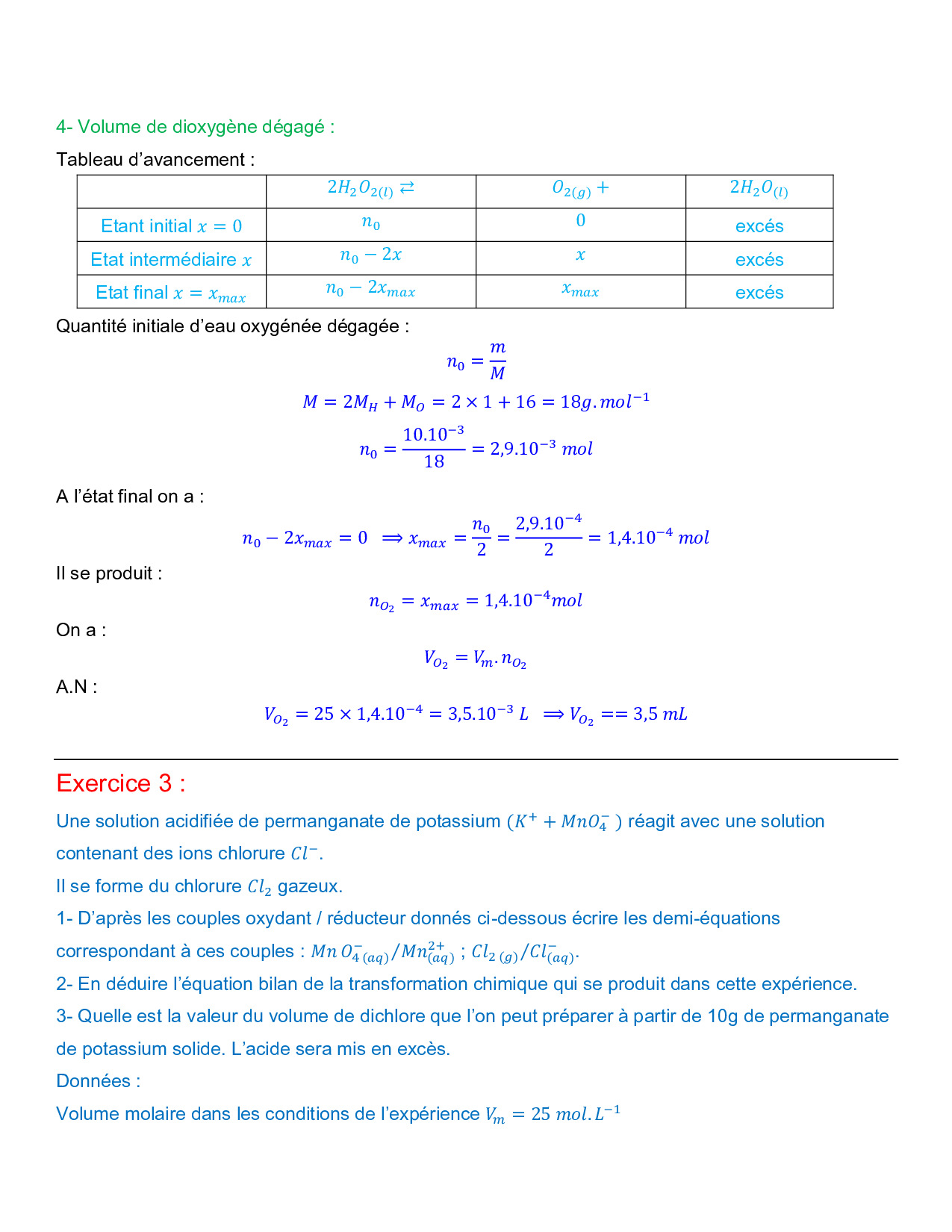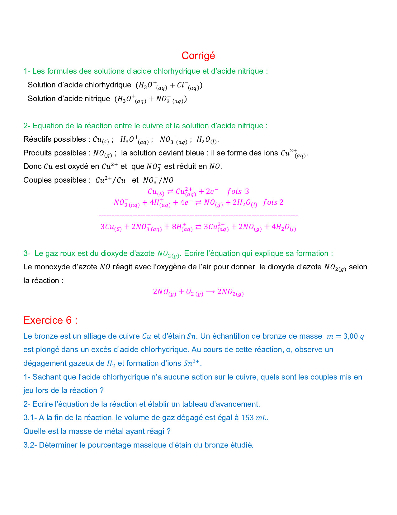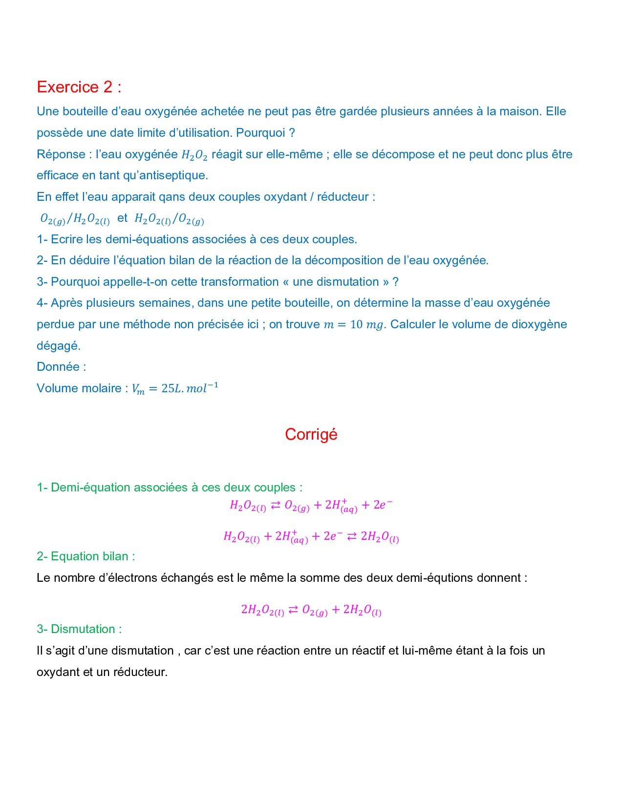 Les réactions d'oxydo-réduction - Exercices corrigés 1