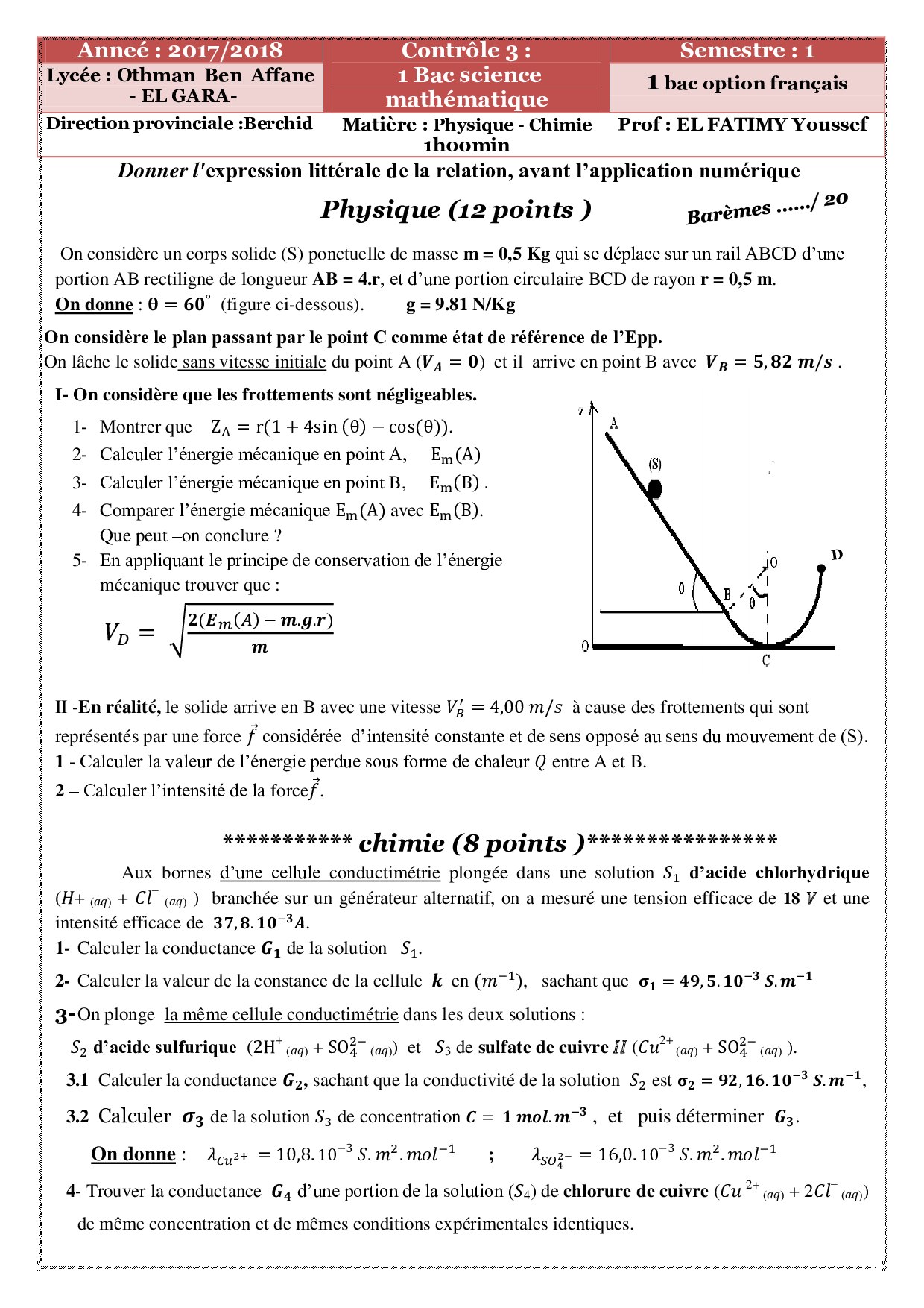 Devoir 3 Modèle 6 - Physique Chimie 1er Bac Semestre 1