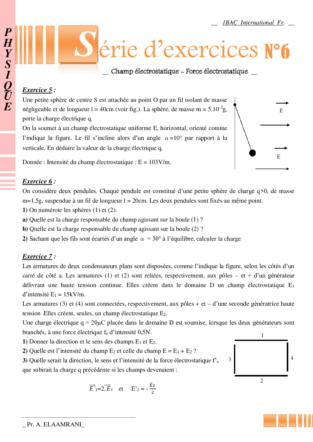 Champ électrostatique - Exercices non corrigés 1