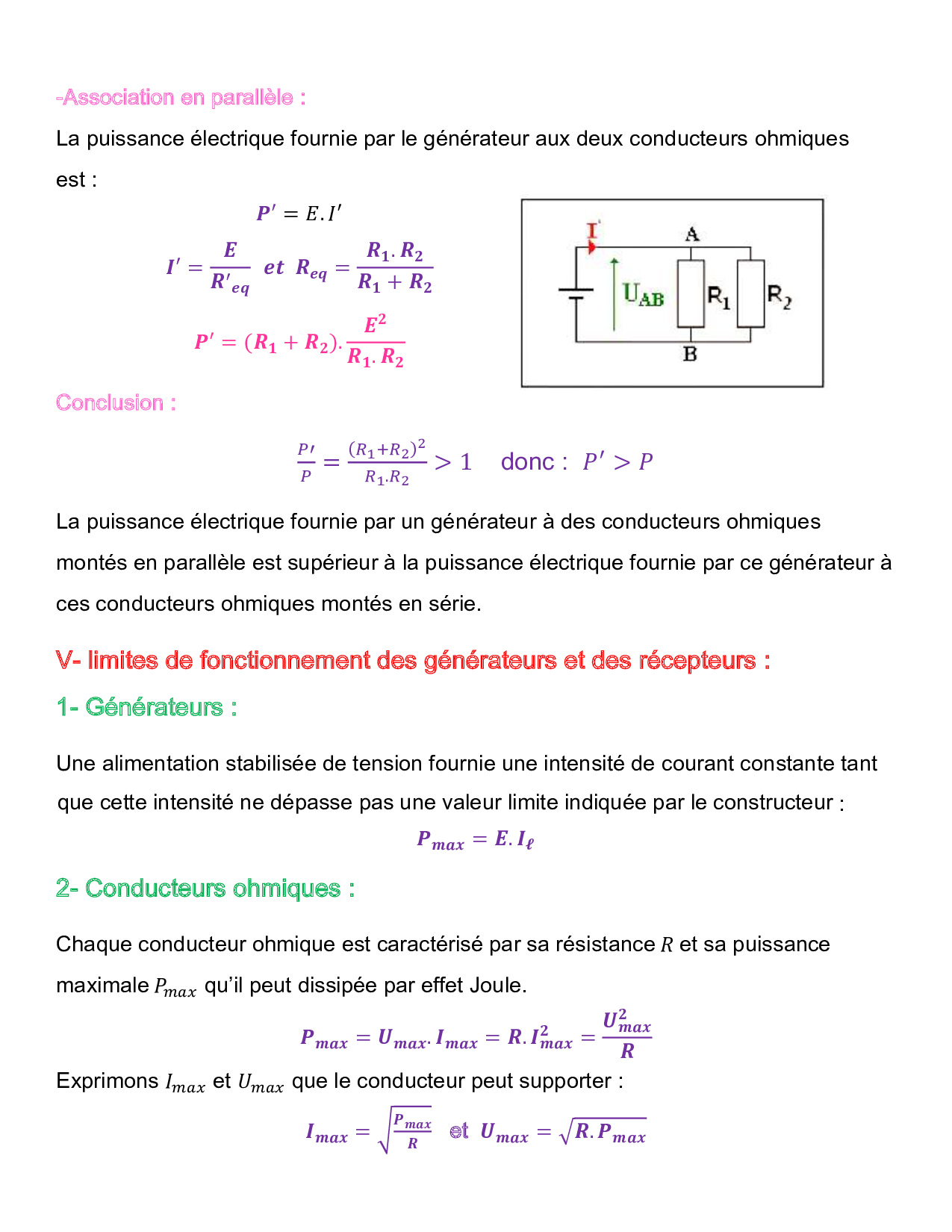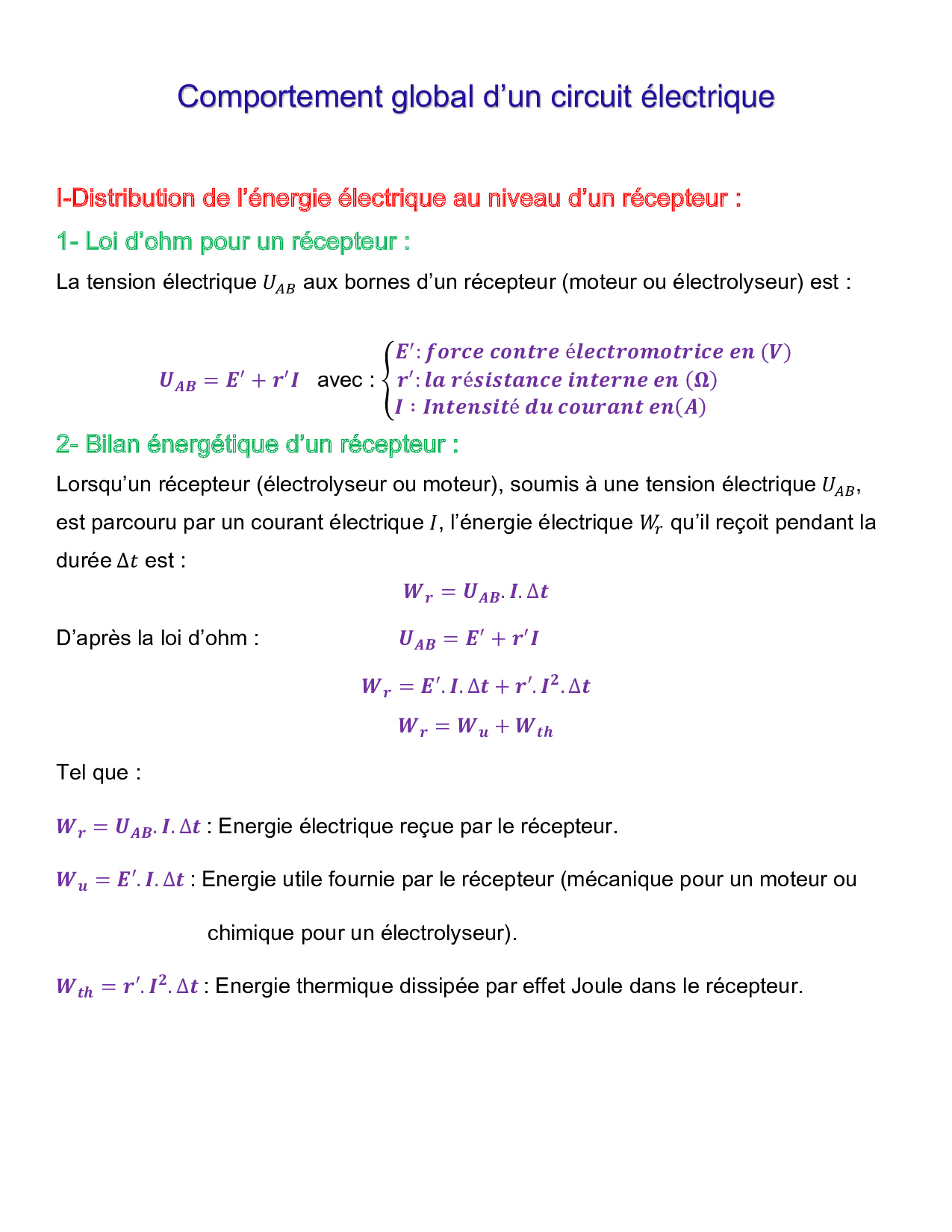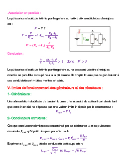 Transfert d'énergie dans un circuit électrique - Comportement global d'un circuit électrique