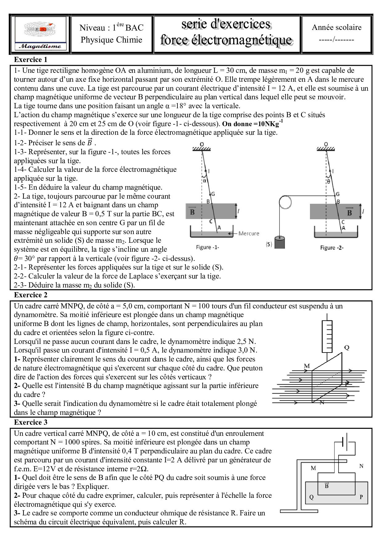 Les forces électromagnétiques - La loi de Laplace - Exercices non corrigés 2