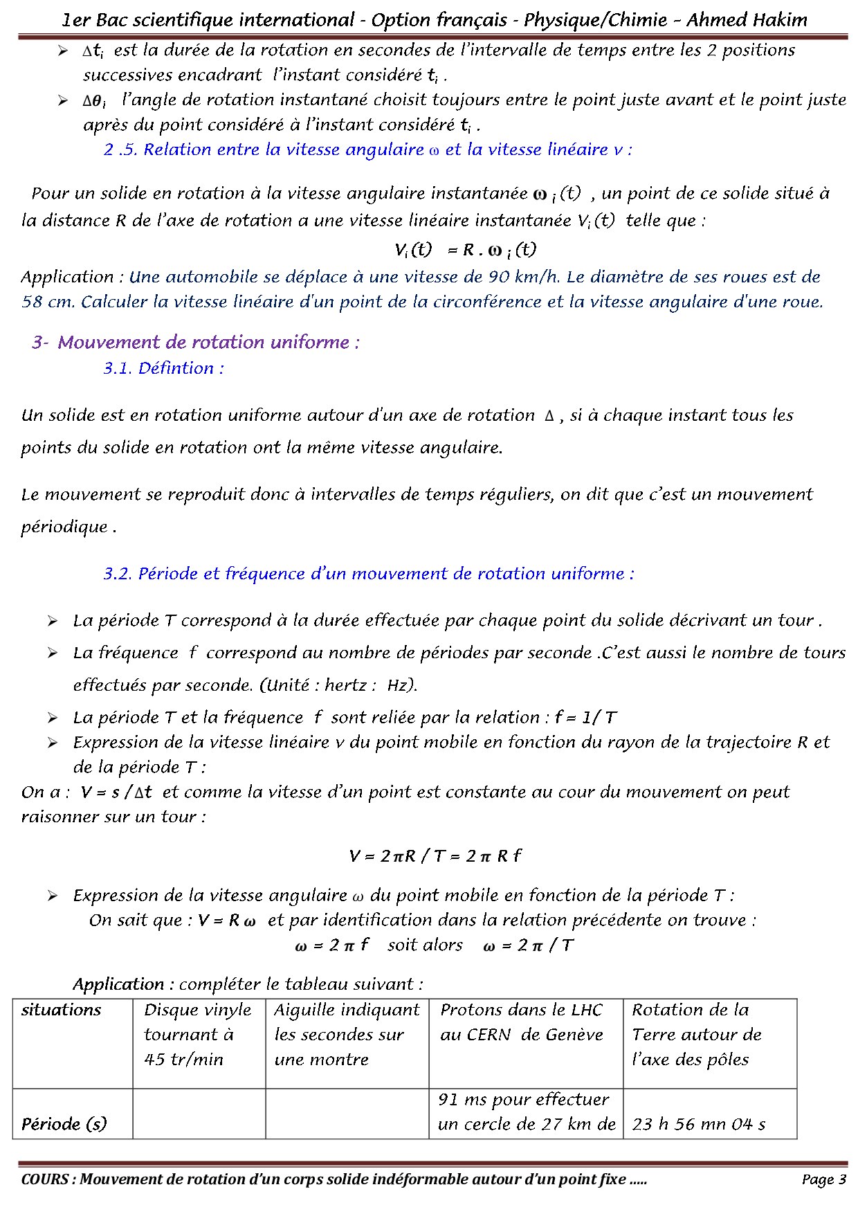 Rotation d'un solide indéformable autour d'un axe fixe - Cours 3
