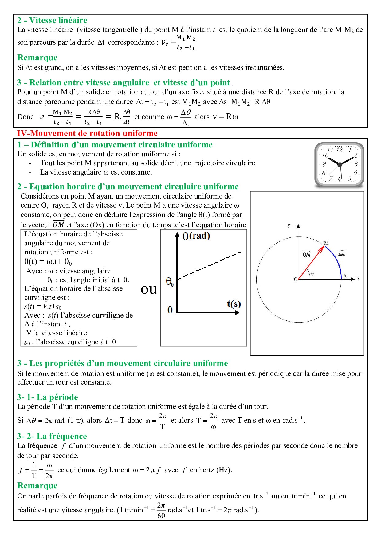 Rotation d'un solide indéformable autour d'un axe fixe - Résumé de cours 1