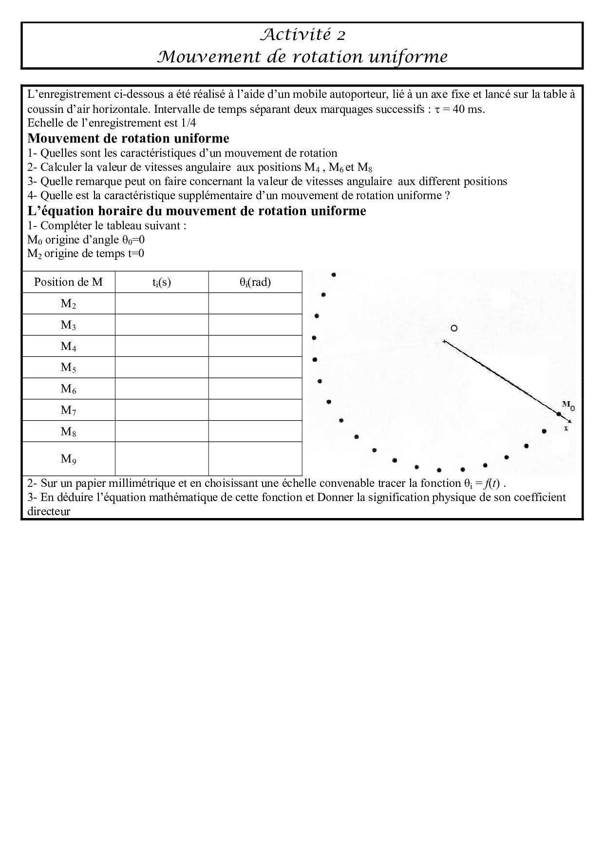 Rotation d'un solide indéformable autour d'un axe fixe - Activités 2
