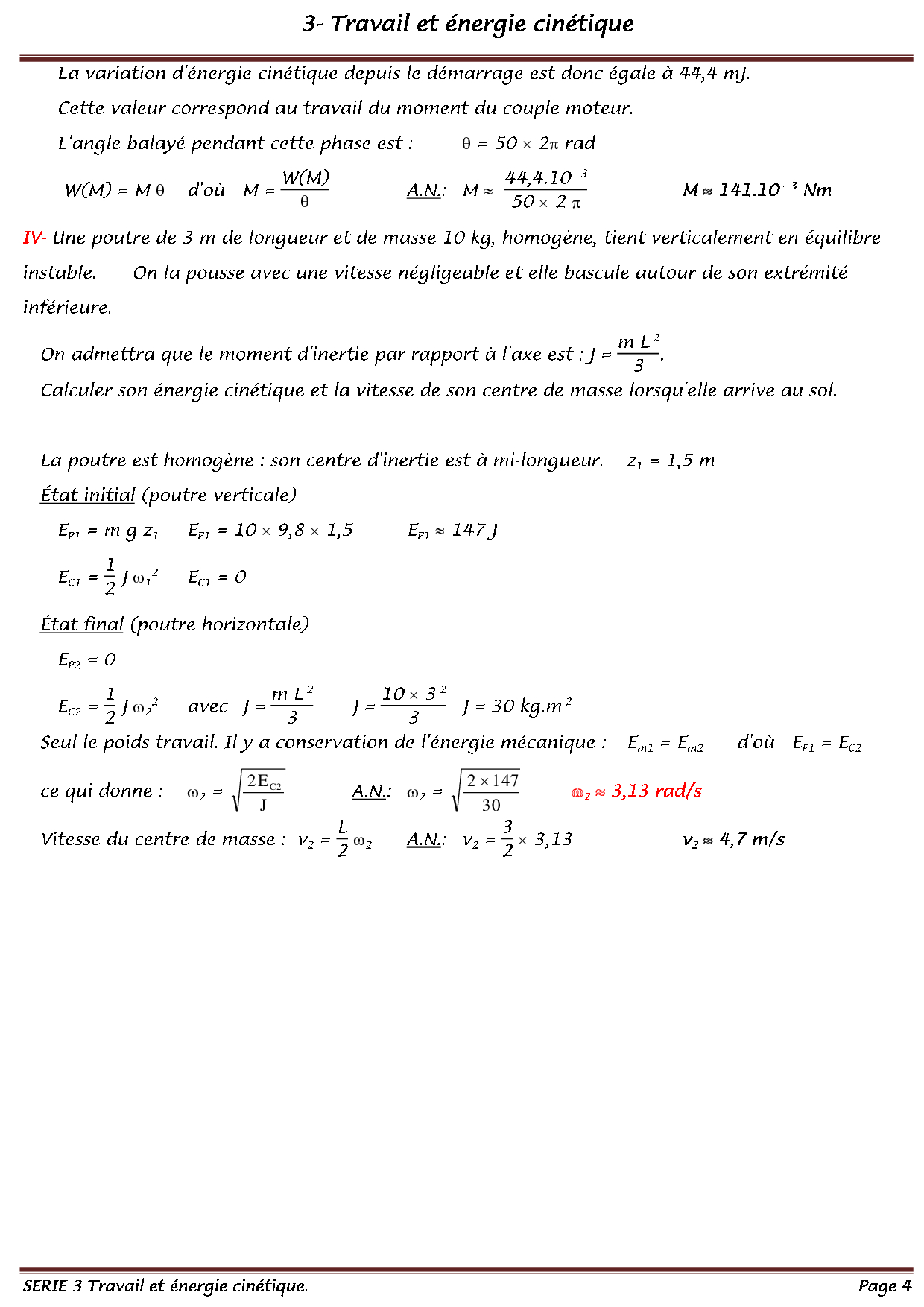 Travail et énergie cinétique - Corrigé série d'exercices 2