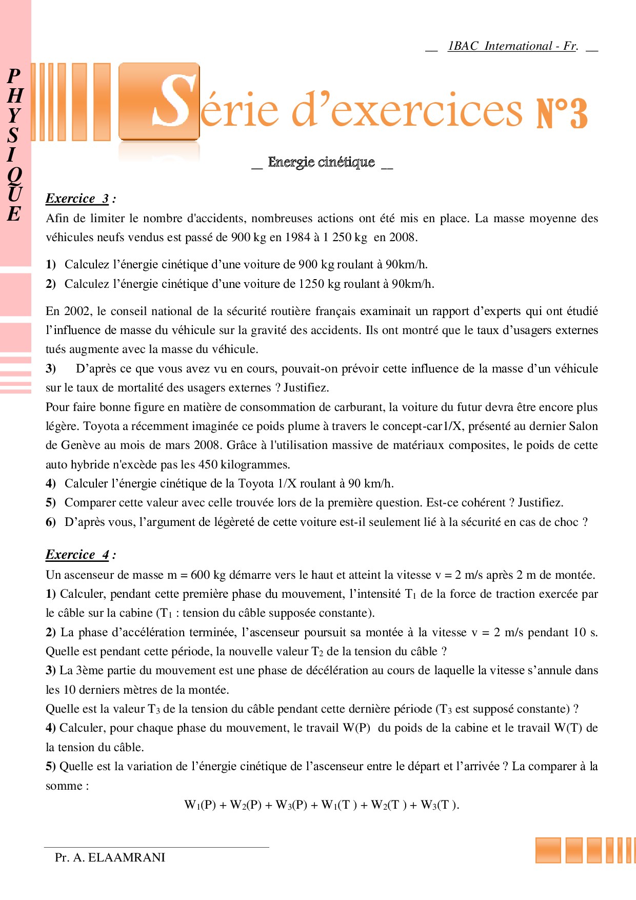 Travail et énergie cinétique - Exercices non corrigés 2