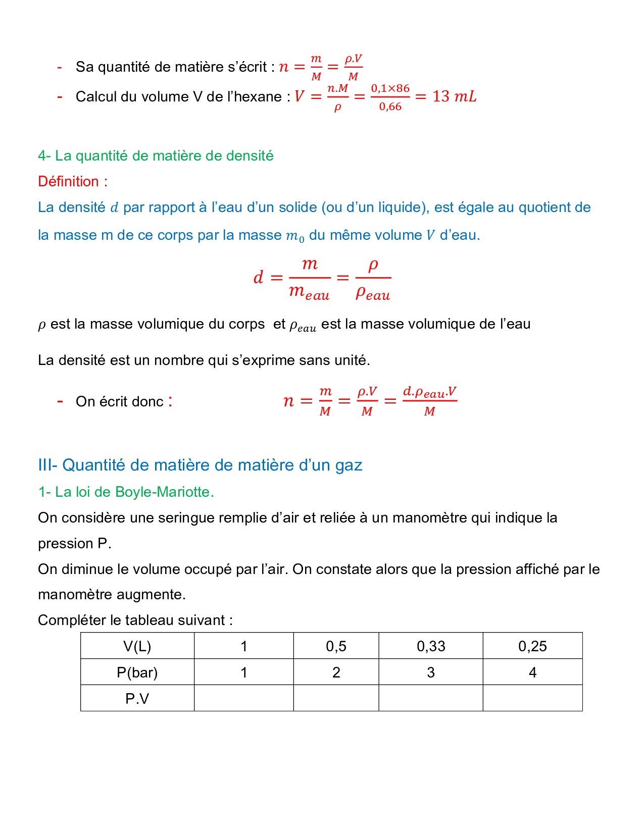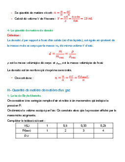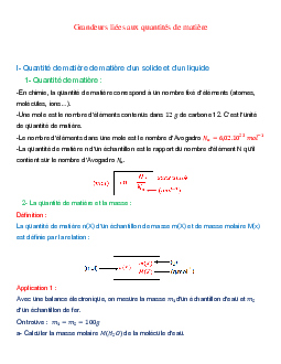 Grandeurs physiques liées à la quantité de matière - Cours 2