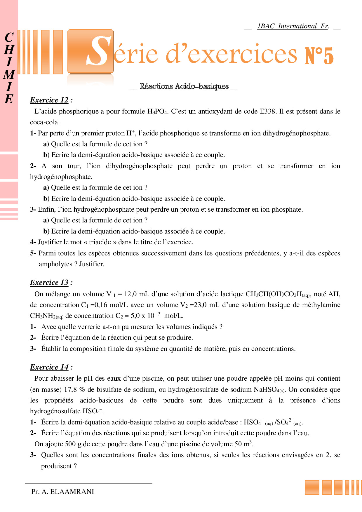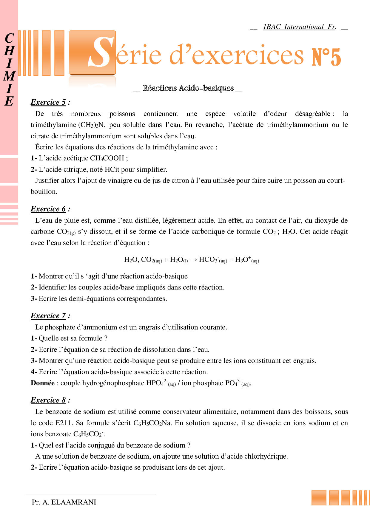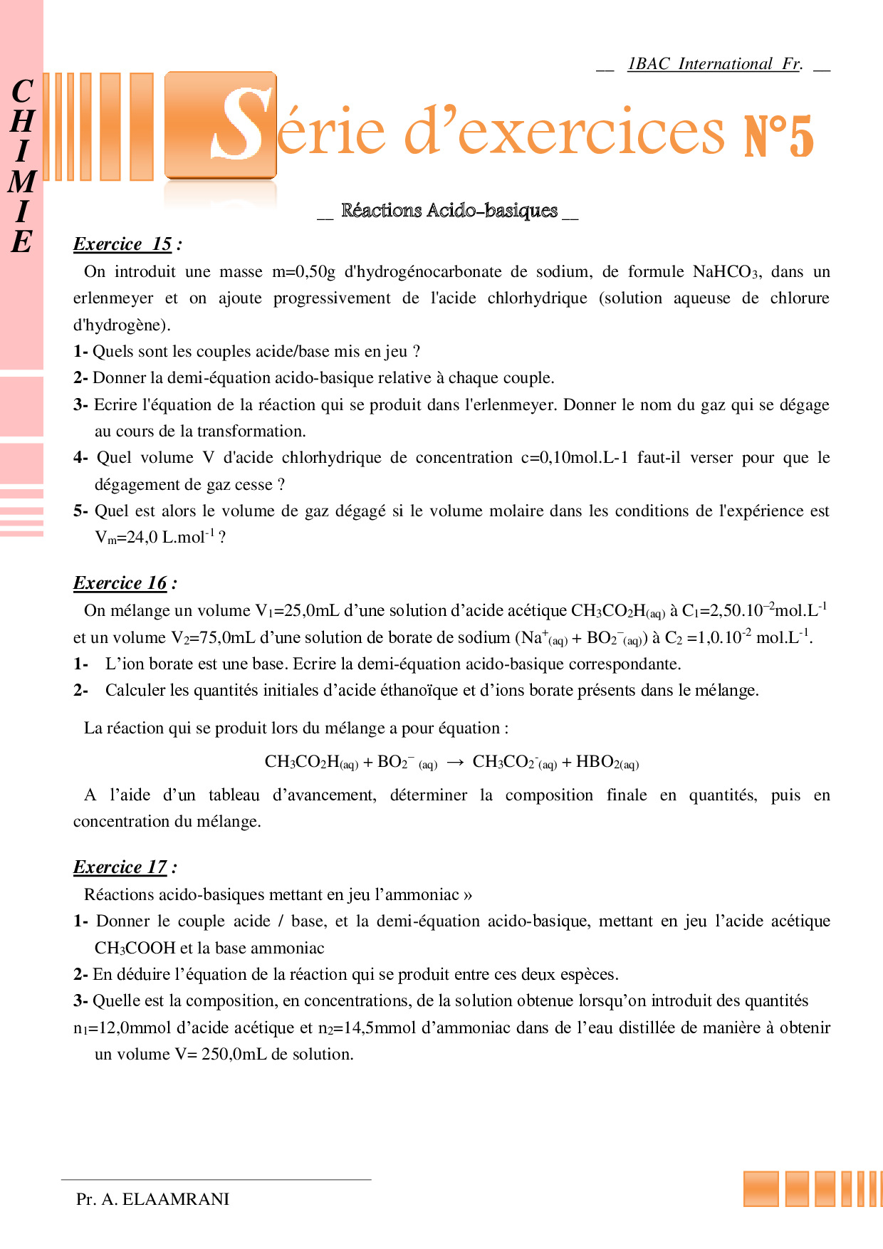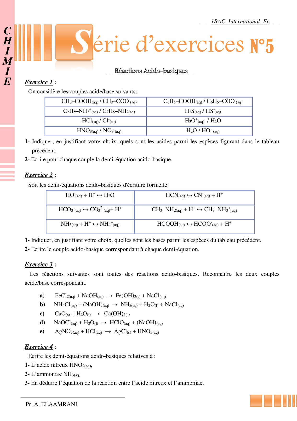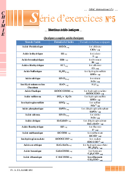 Les réactions acido-basiques - Exercices non corrigés 1