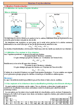 Les réactions d'oxydo-réduction - Résumé de cours 1