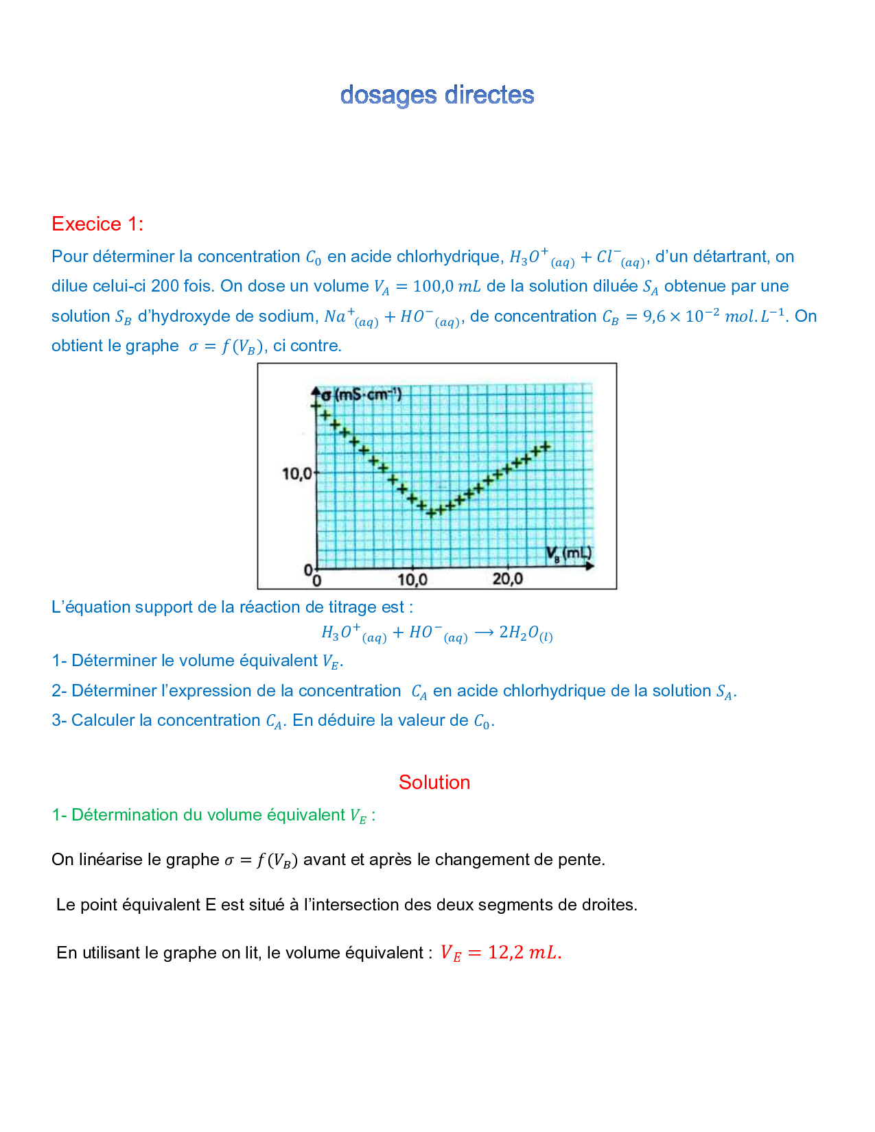 Les dosages (ou titrages) directs - Exercices corrigés 1