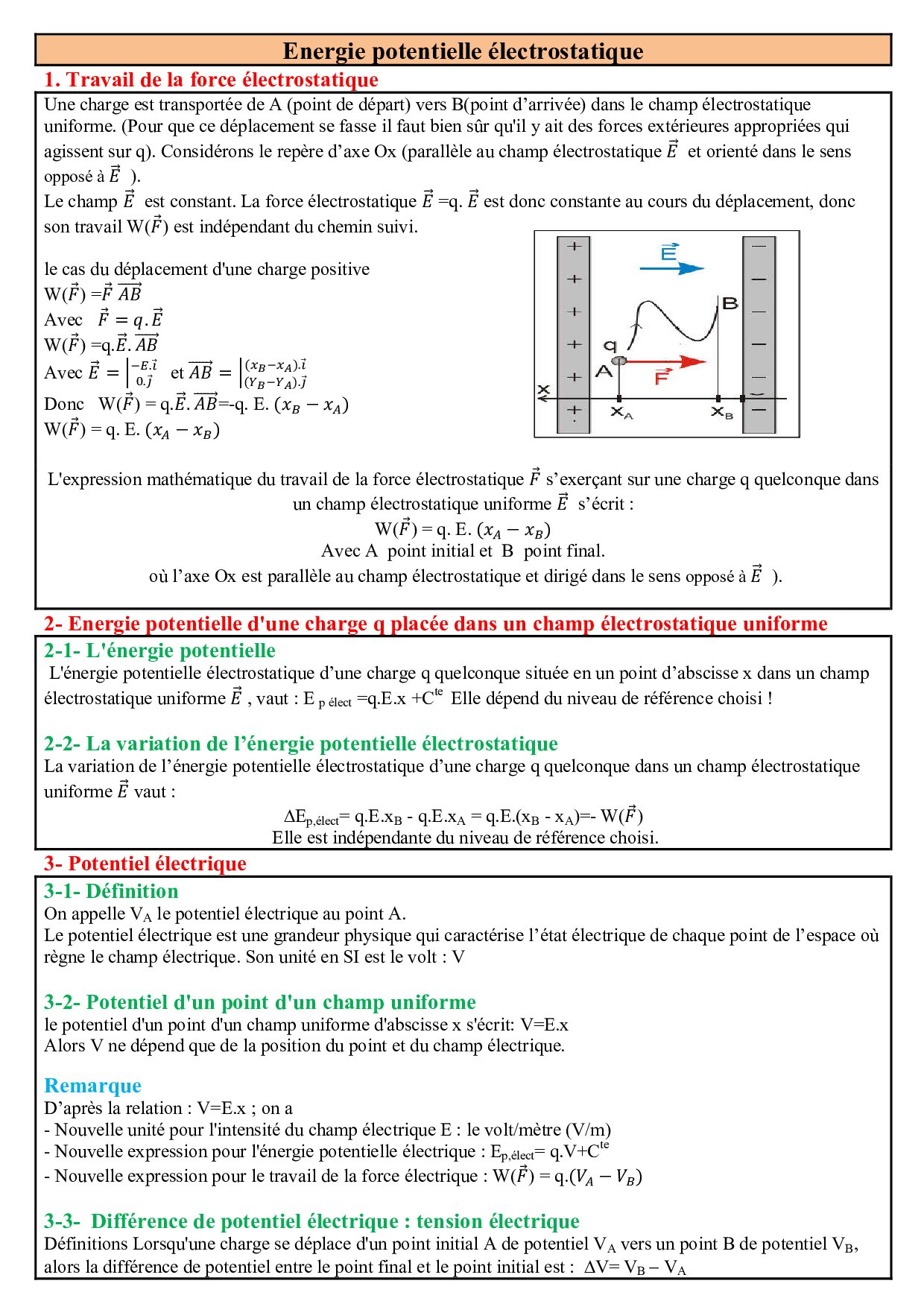 Énergie potentielle d'une charge électrique dans un champ électrique uniforme (Sciences Maths)