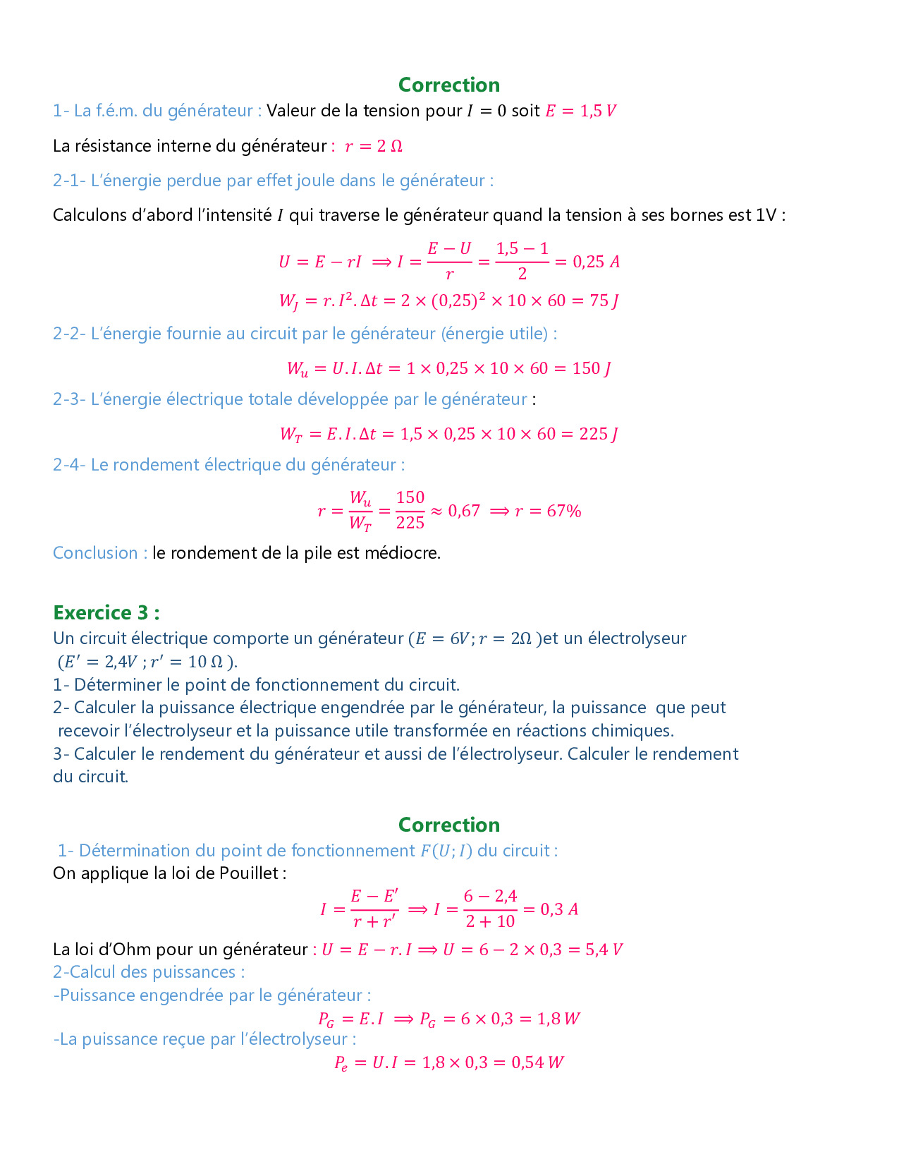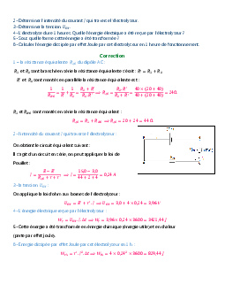 Comportement global d'un circuit électrique - Exercices corrigés 1