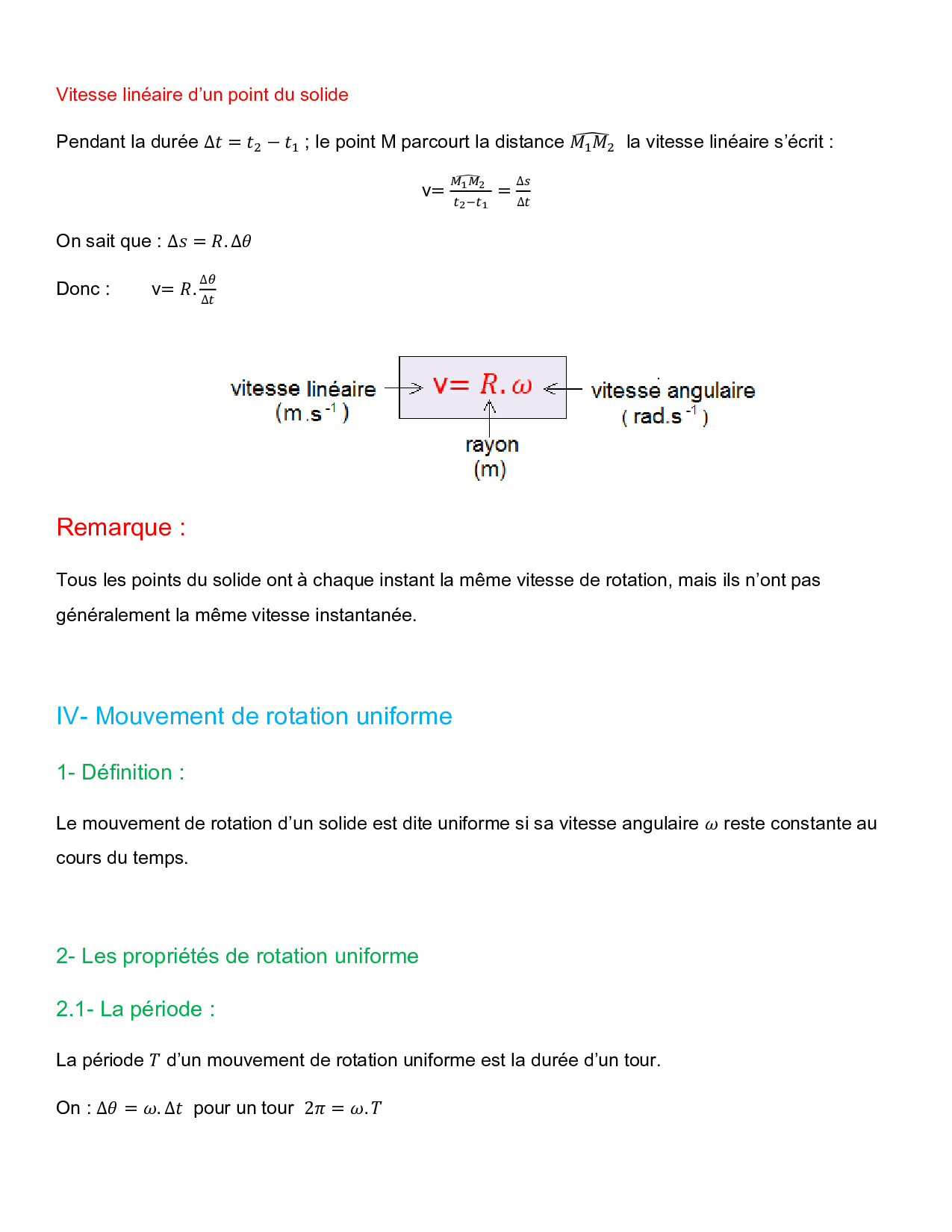Rotation d'un solide indéformable autour d'un axe fixe - Cours 2