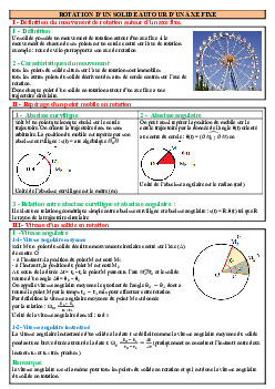 Rotation d'un solide indéformable autour d'un axe fixe - Résumé de cours 1