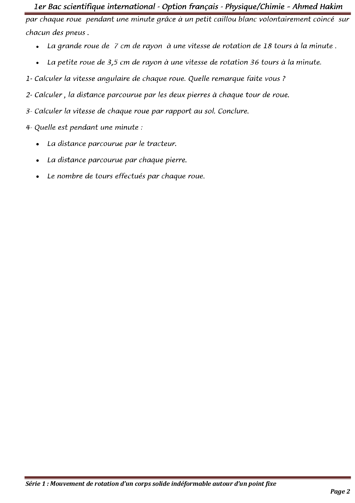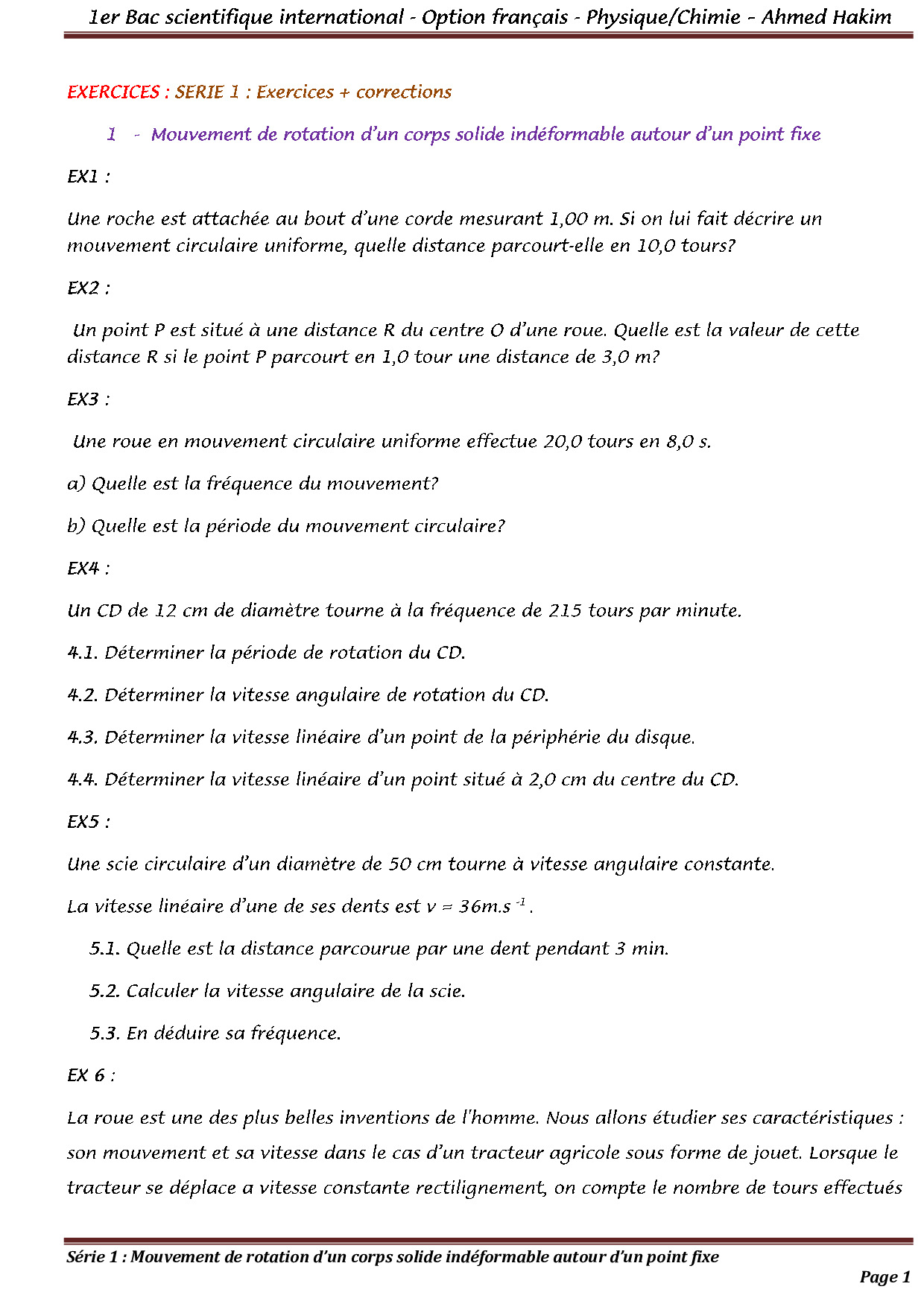 Rotation d'un solide indéformable autour d'un axe fixe - Série d'exercices 1