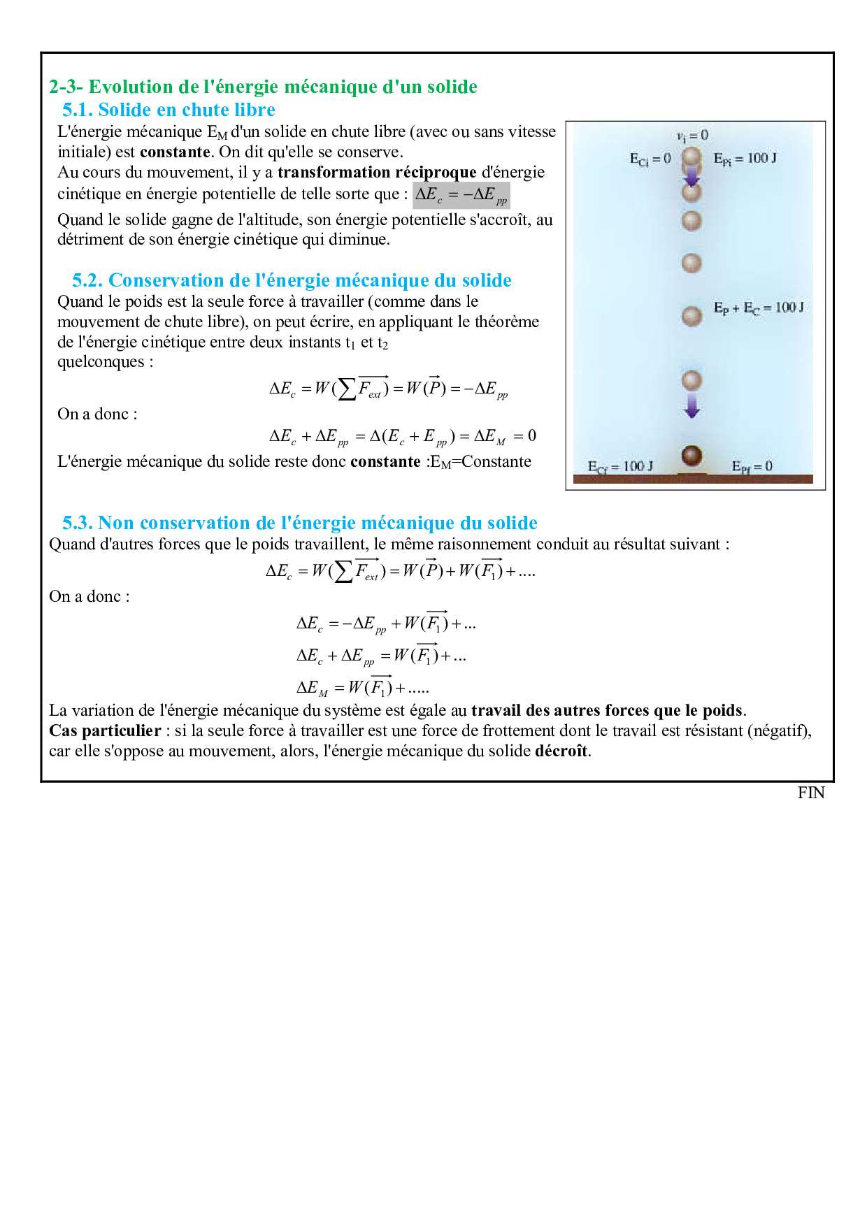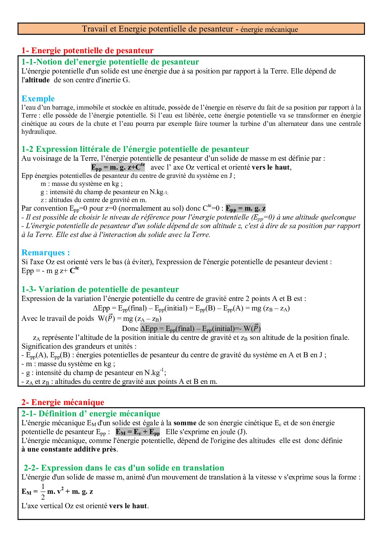 Travail et énergie potentielle de pesanteur - Énergie mécanique - Résumé de cours 1