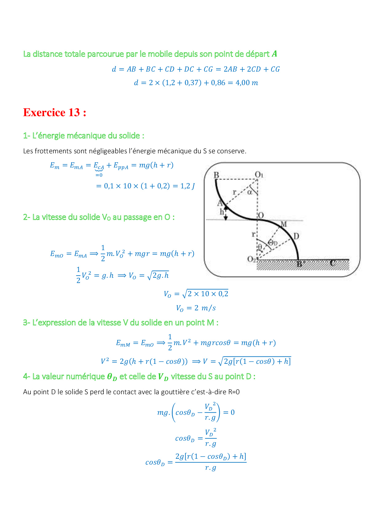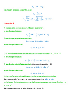 Travail et énergie potentielle de pesanteur - Énergie mécanique - Corrigé série d'exercices 1
