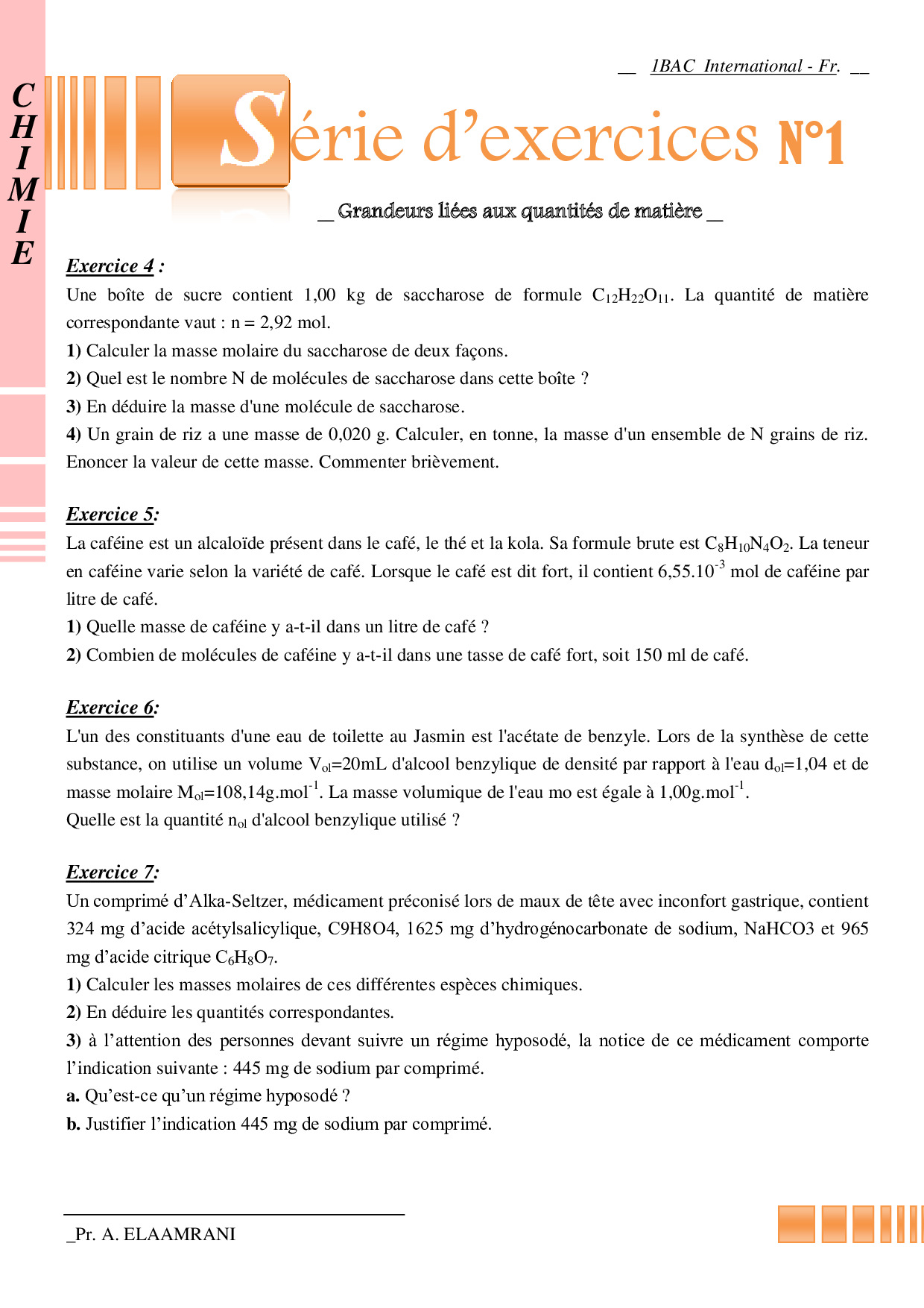 Grandeurs physiques liées à la quantité de matière - Exercices non corrigés 2