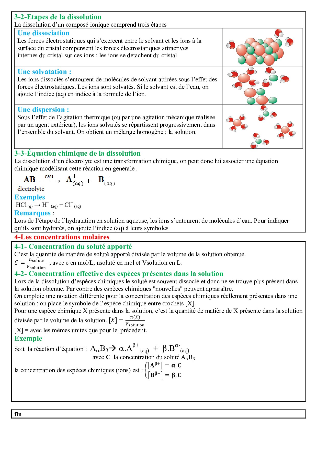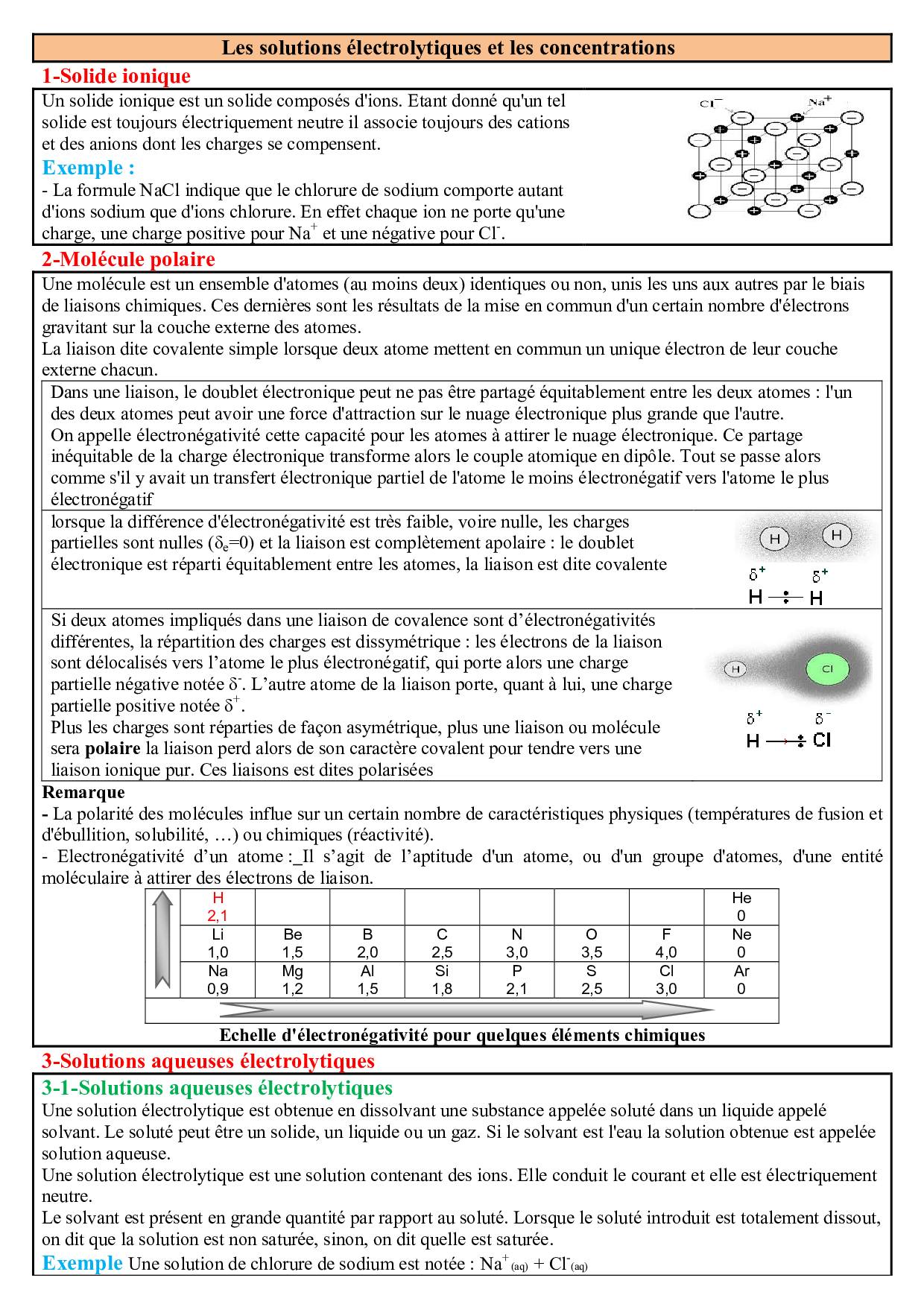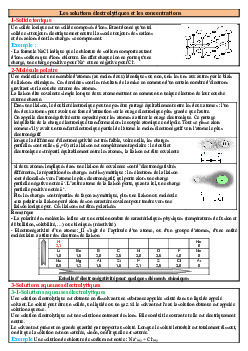 La concentration et les solutions électrolytiques - Résumé de cours 1