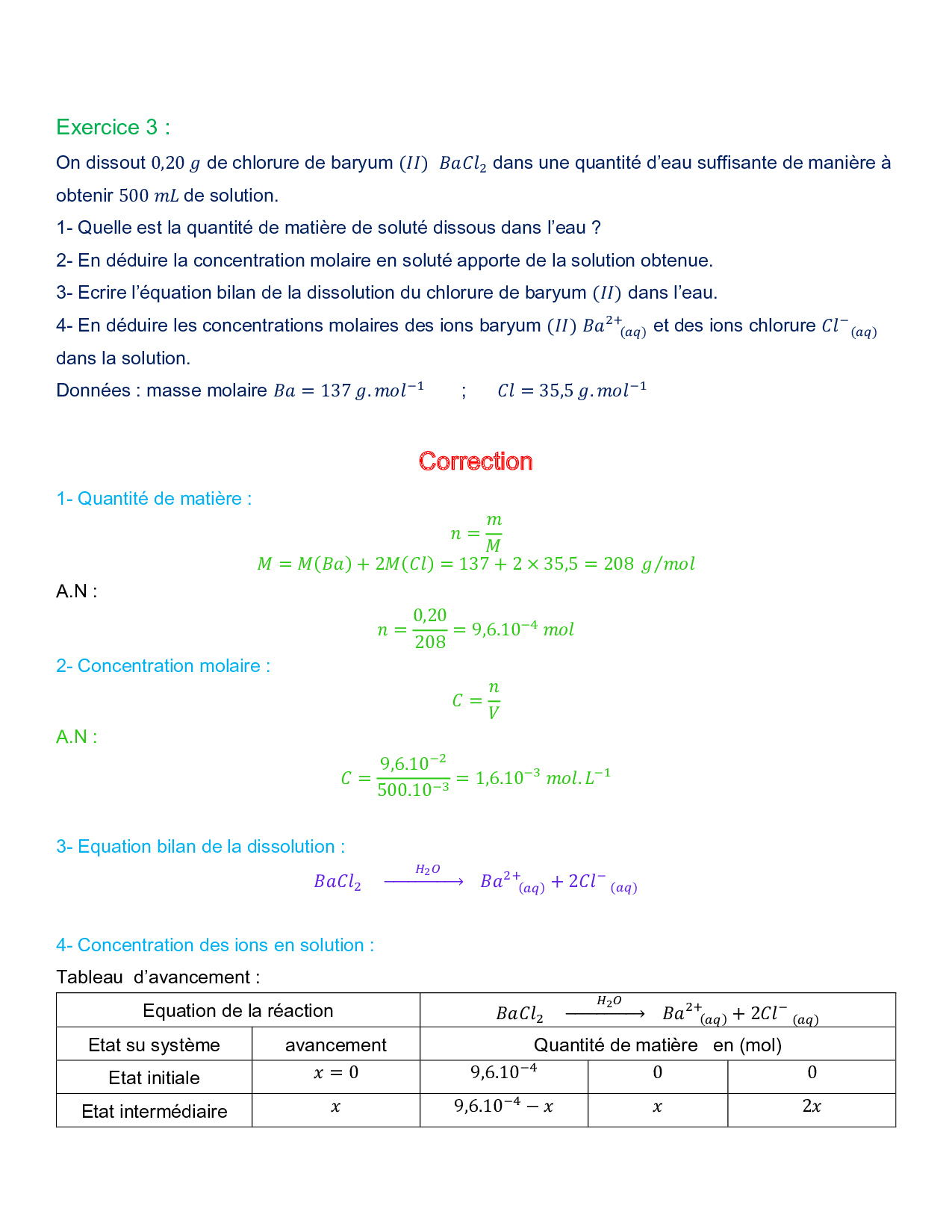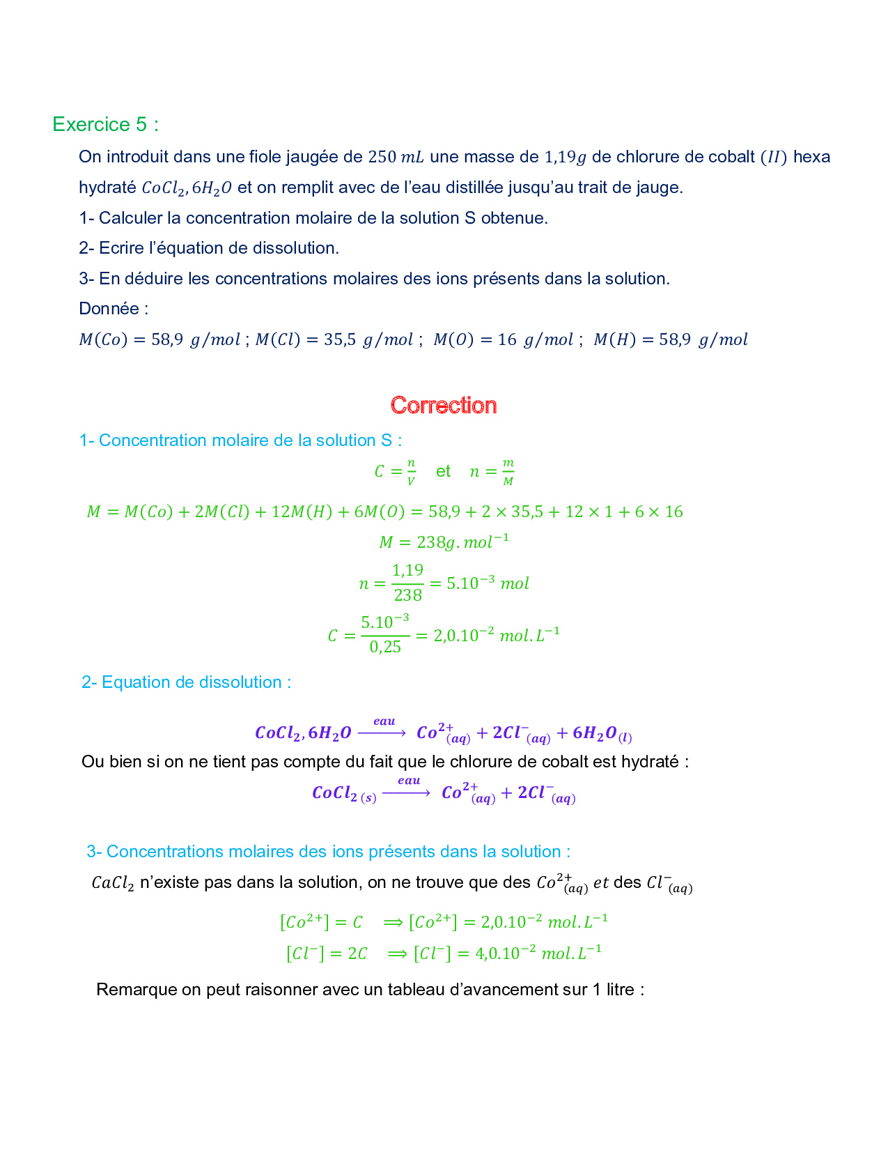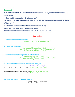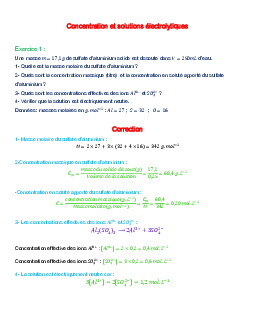 La concentration et les solutions électrolytiques - Exercices corrigés 1