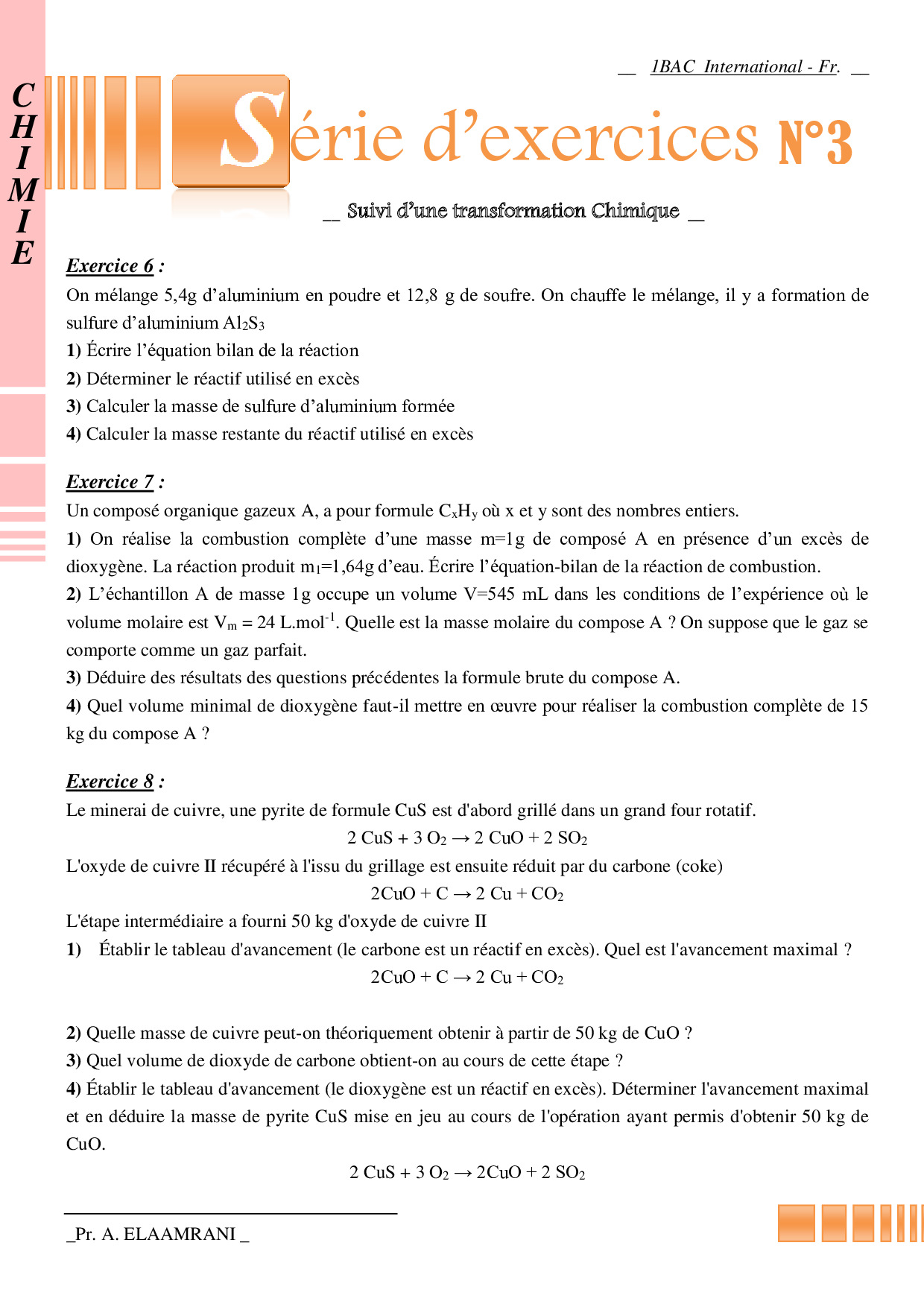 Suivi d'une transformation chimique - Exercices non corrigés 2