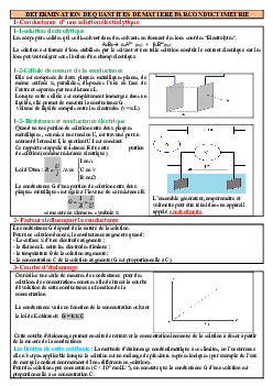 Mesure des quantités de matière en solution par conductimétrie - Résumé de cours 1