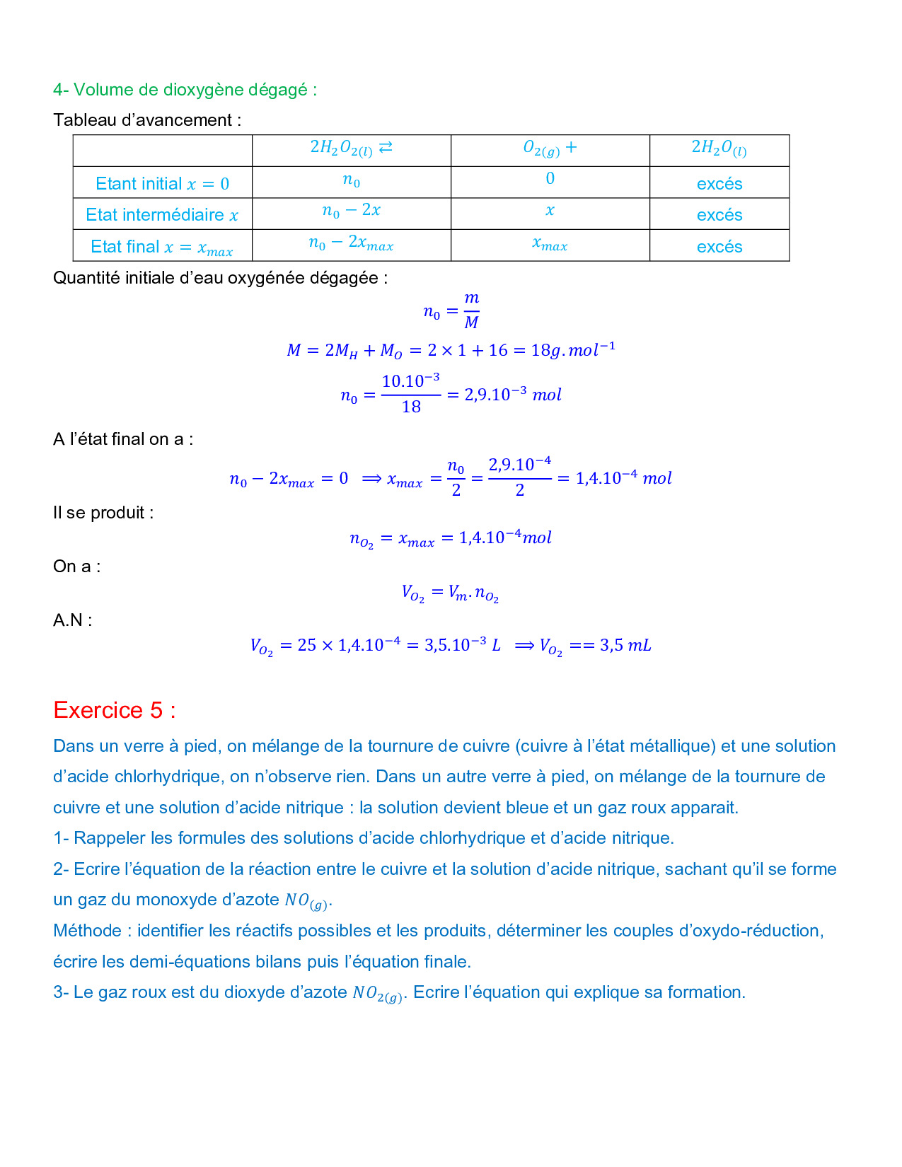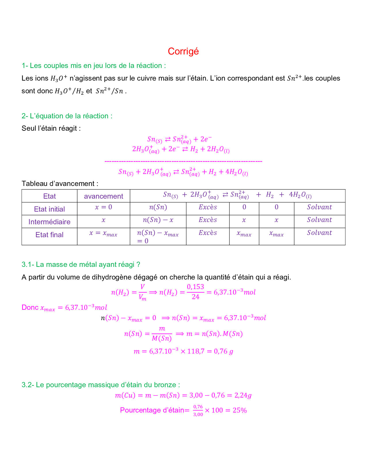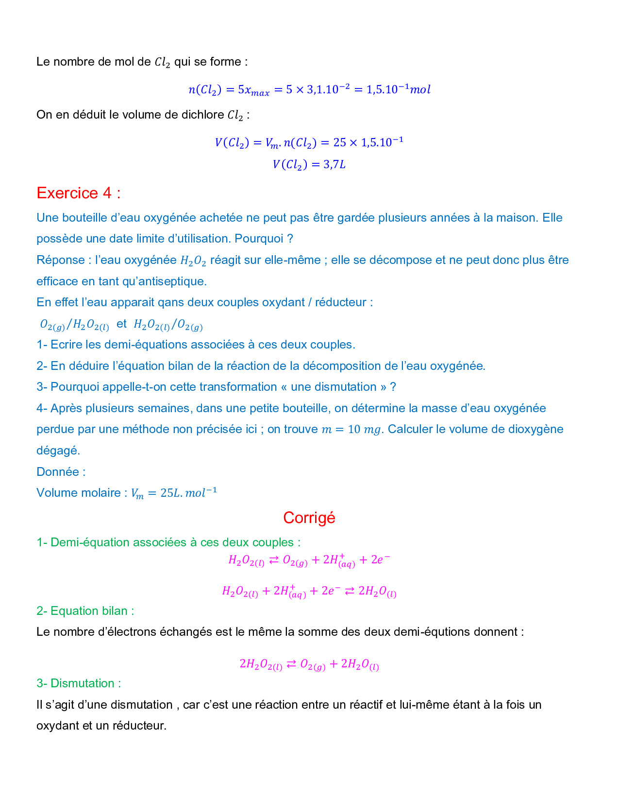 Les réactions d'oxydo-réduction - Exercices corrigés 1