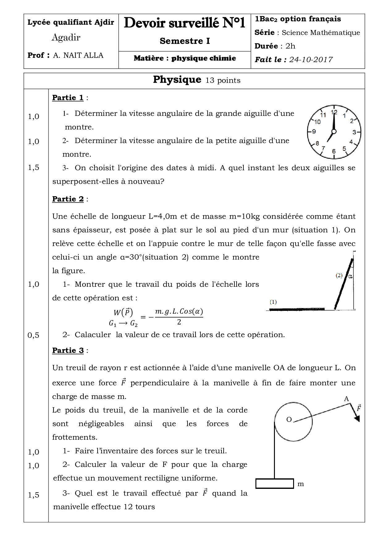 Devoir 1 Modèle 14 - Physique Chimie 1er Bac Semestre 1