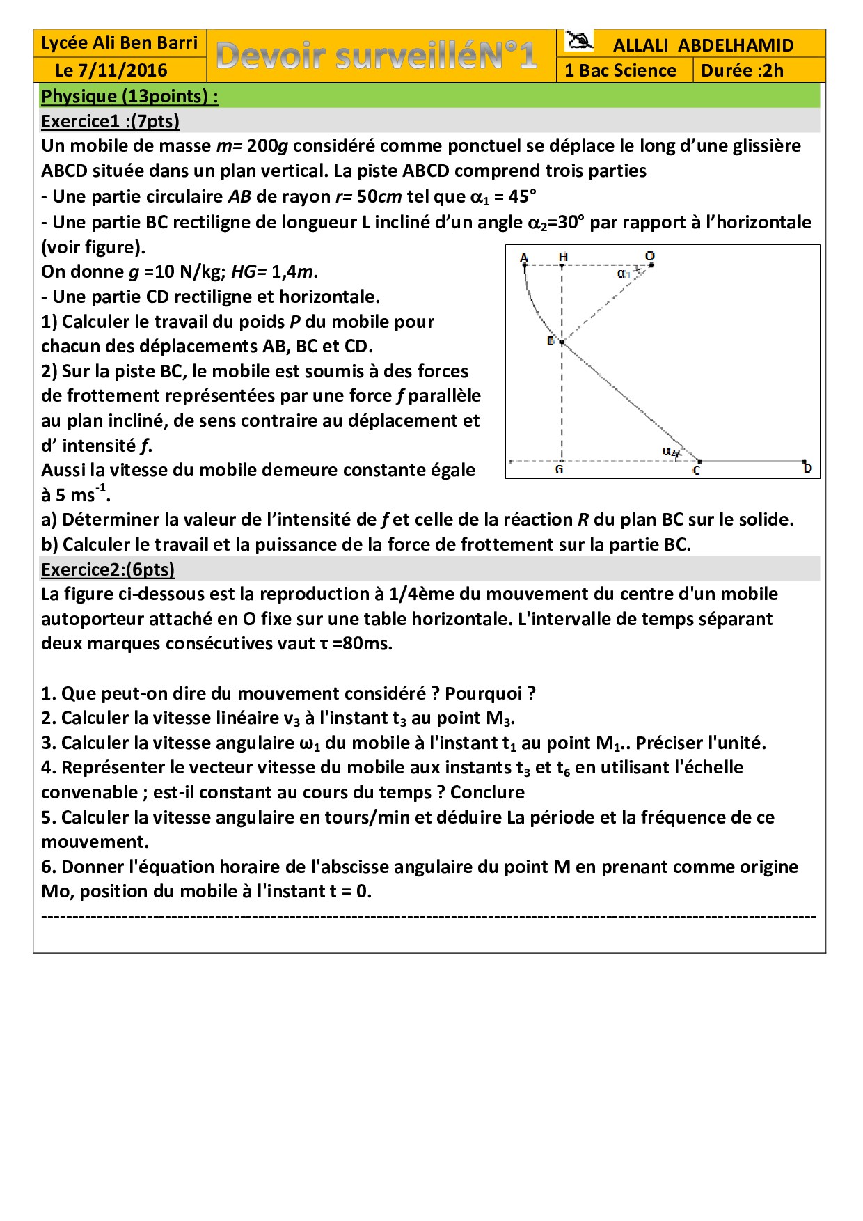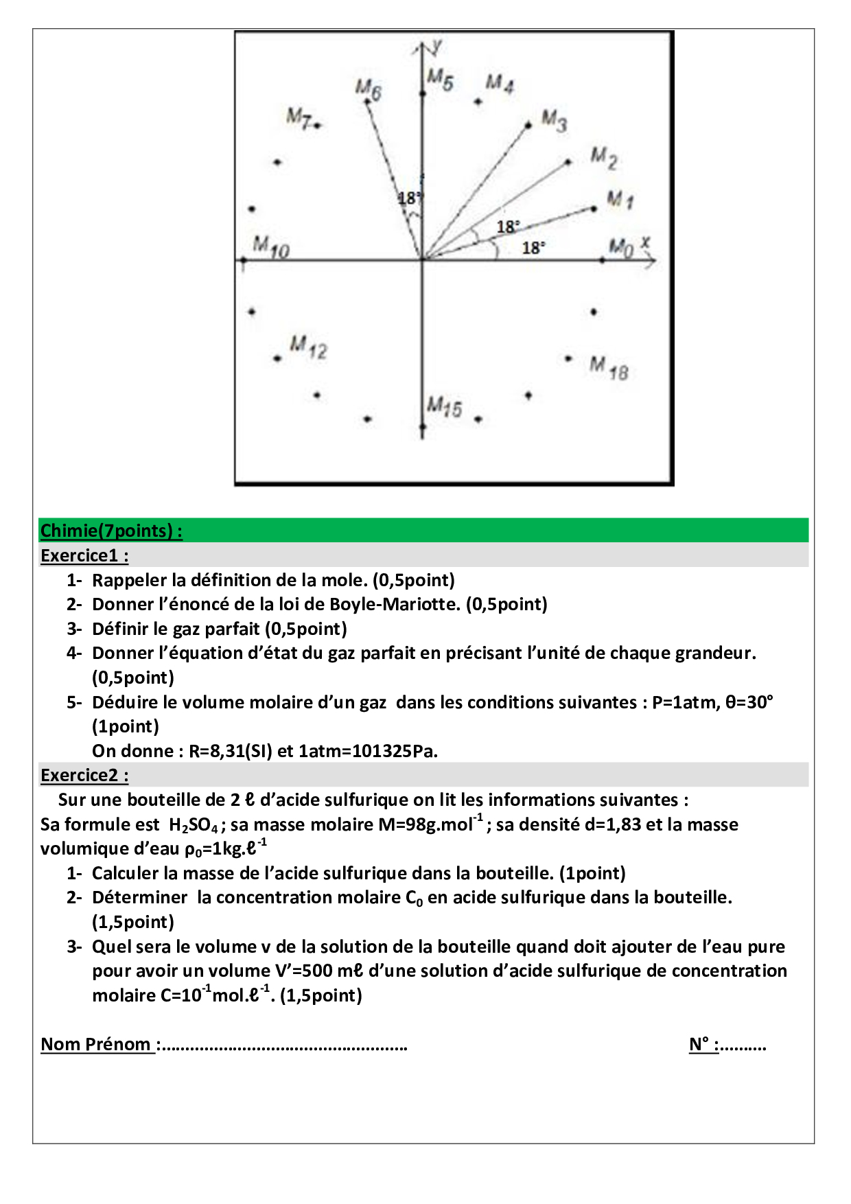 Devoir 1 Modèle 6 - Physique Chimie 1er Bac Semestre 1