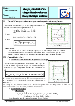 Énergie potentielle d'une charge électrique dans un champ électrique uniforme - Cours 1