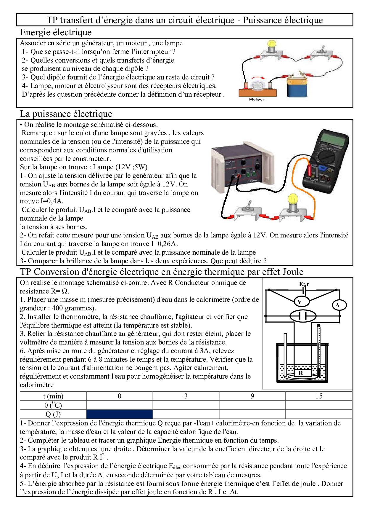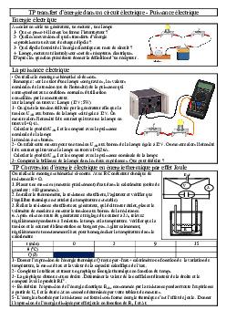Transfert d'énergie dans un circuit électrique - Activités 1