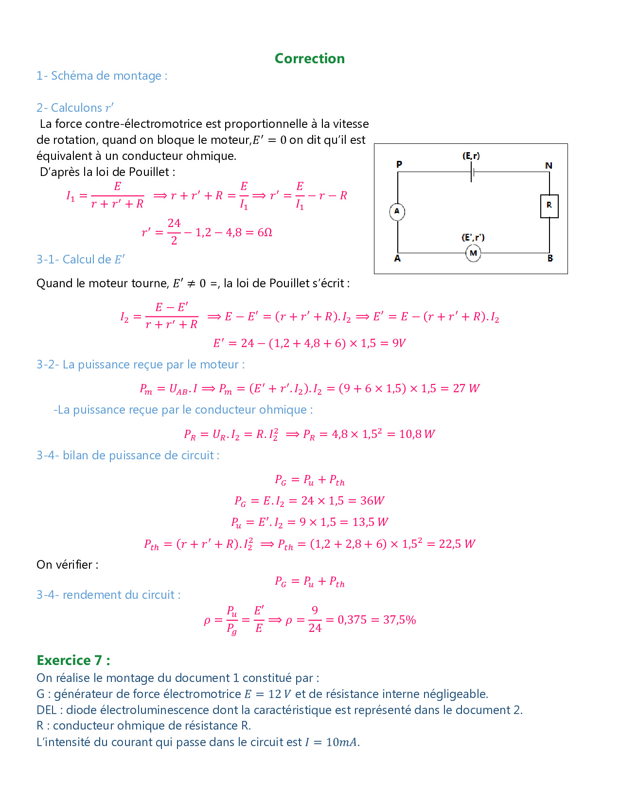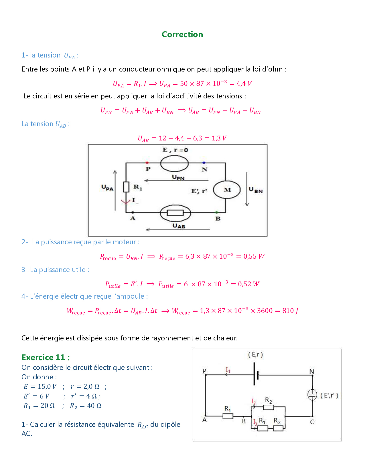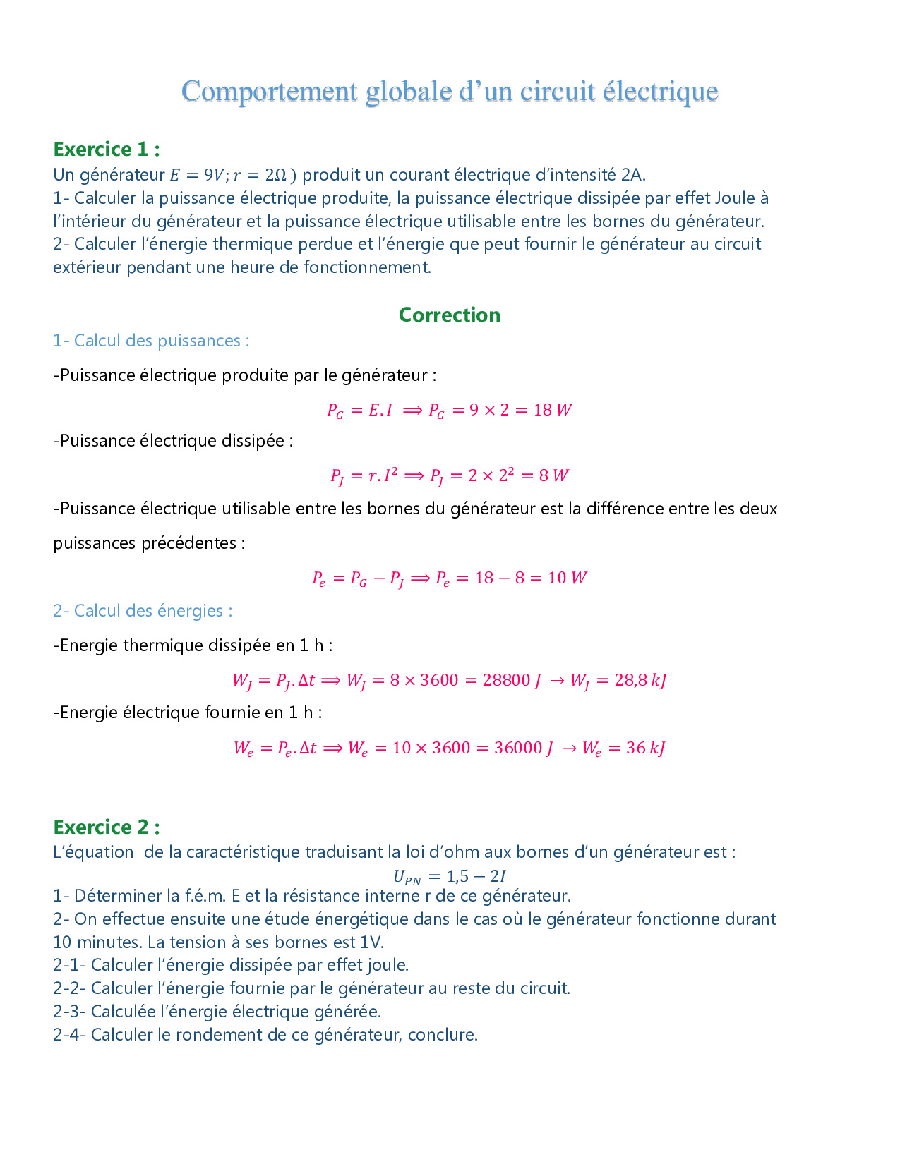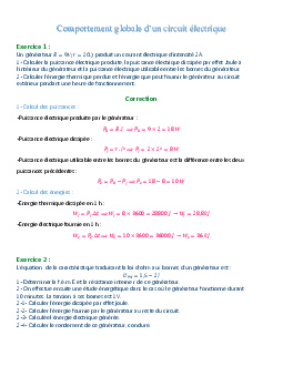 Comportement global d'un circuit électrique - Exercices corrigés 1