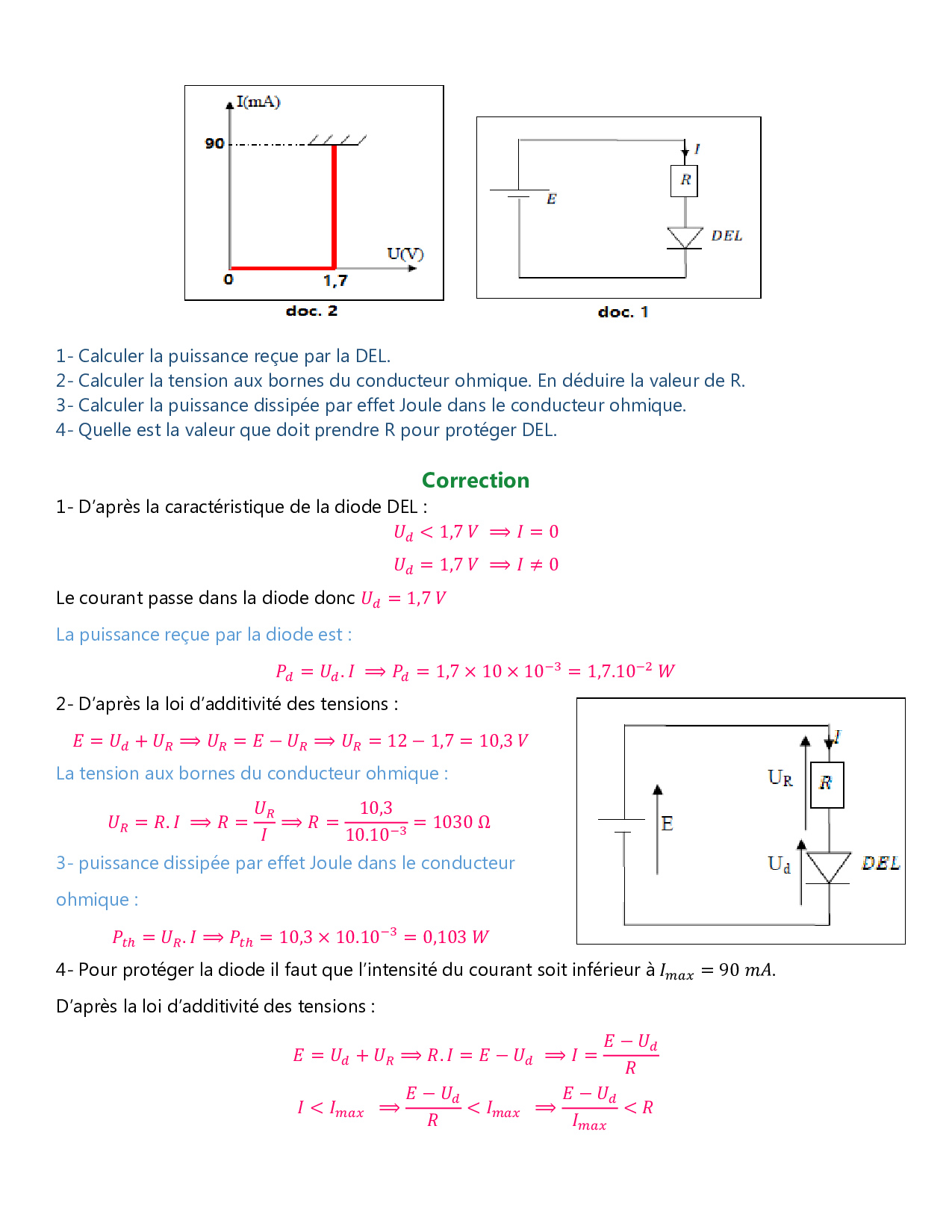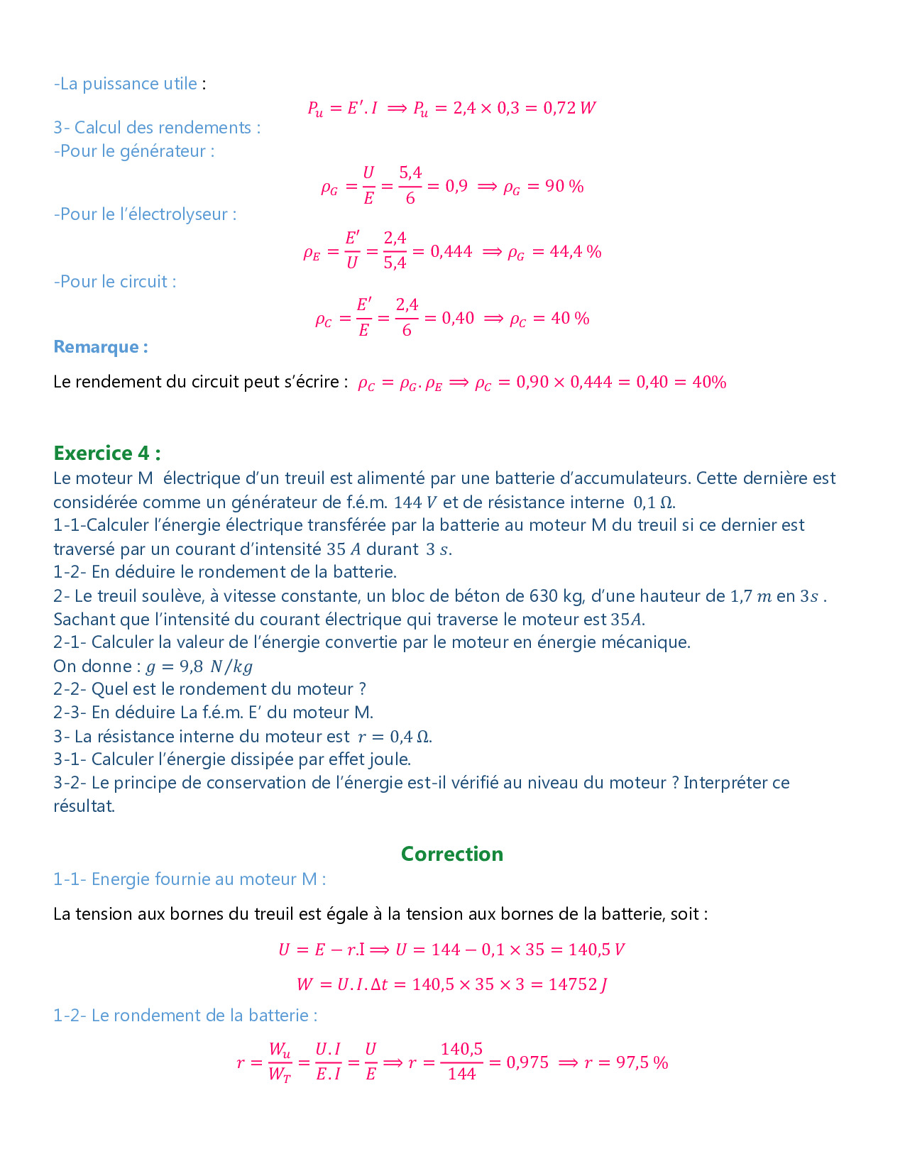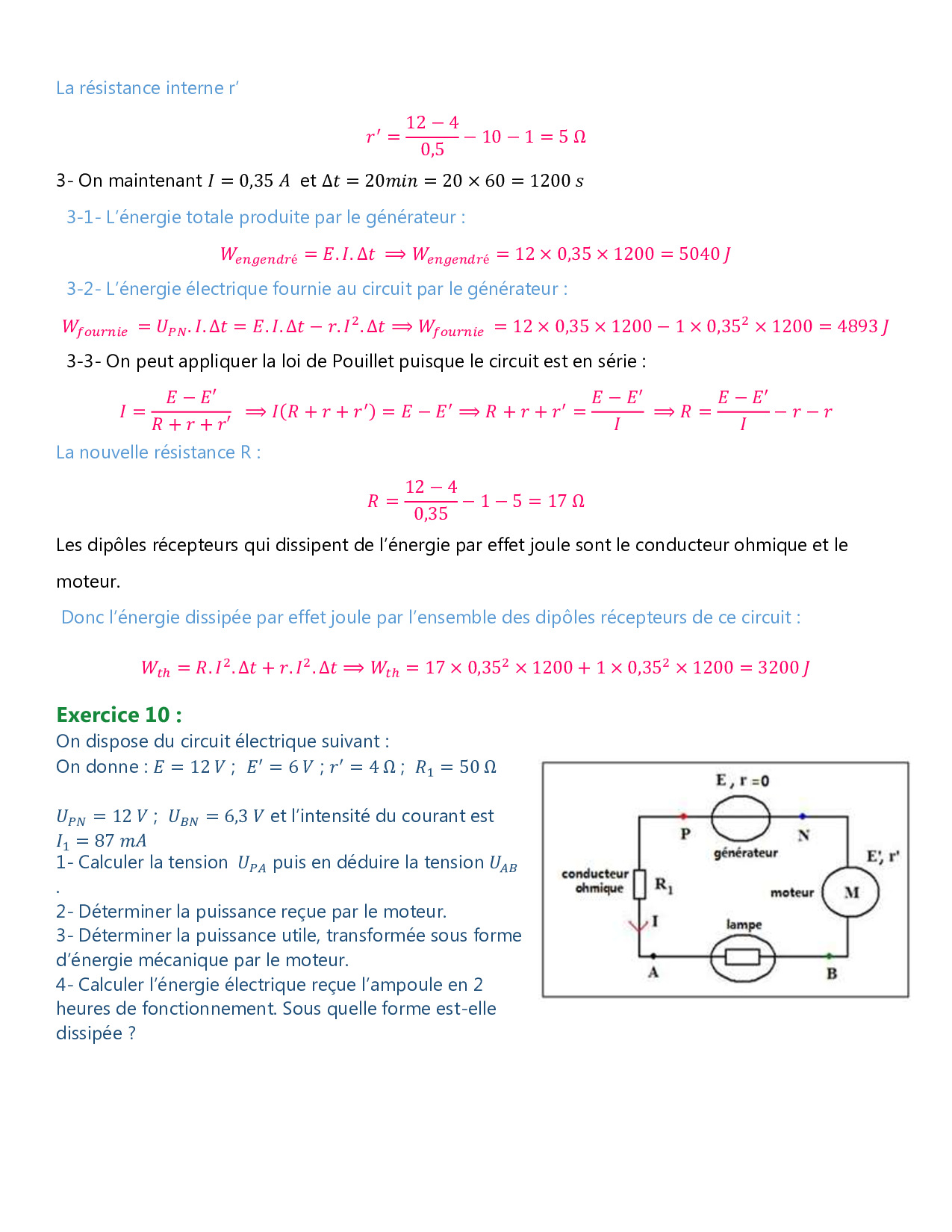 Comportement global d'un circuit électrique - Exercices corrigés 1
