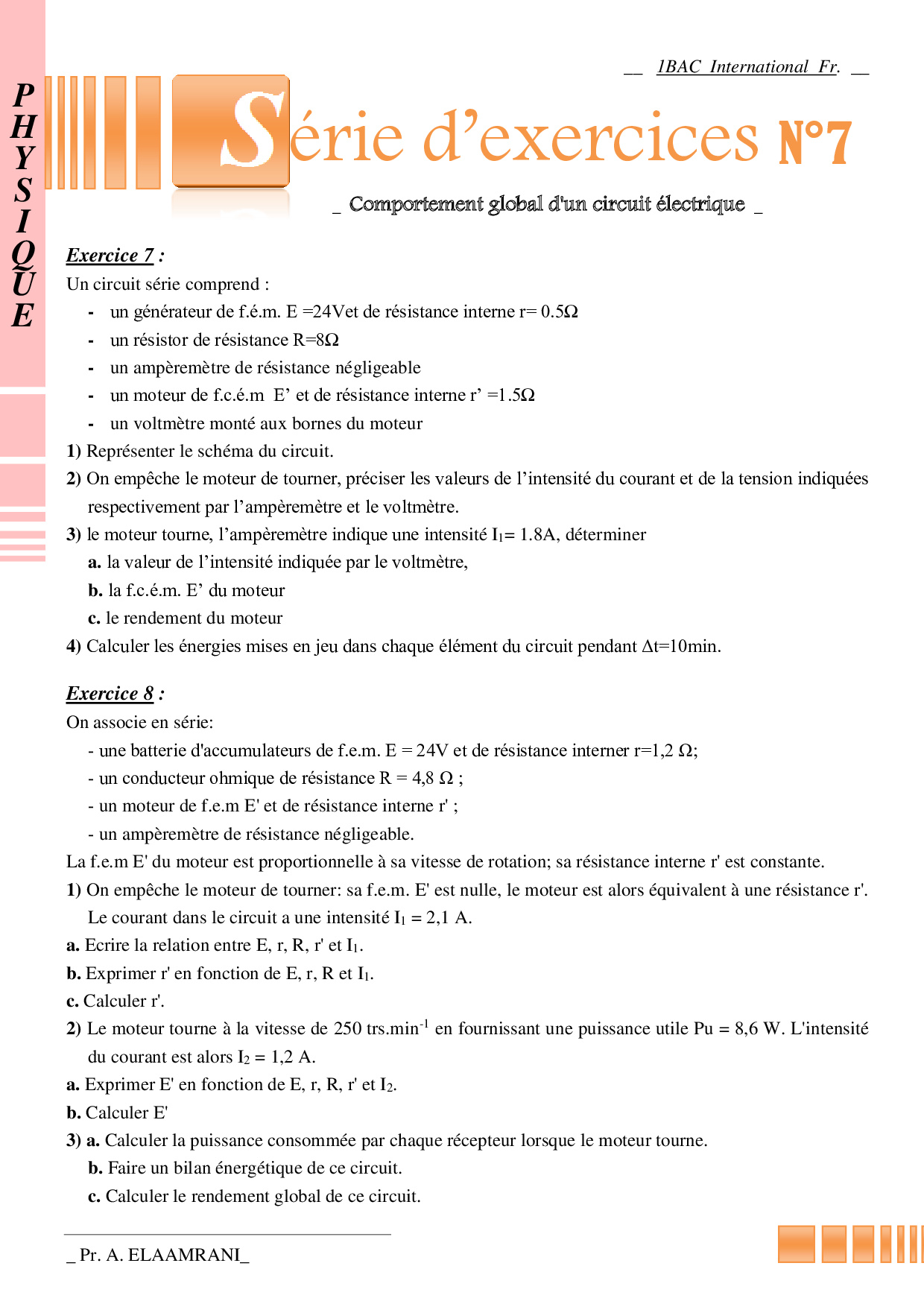 Comportement global d'un circuit électrique - Exercices non corrigés 1