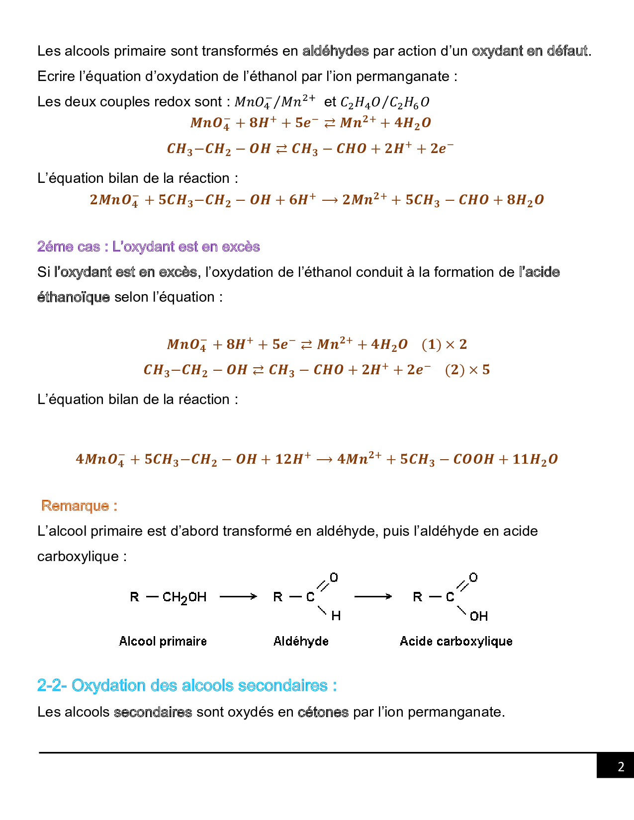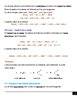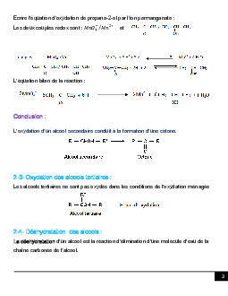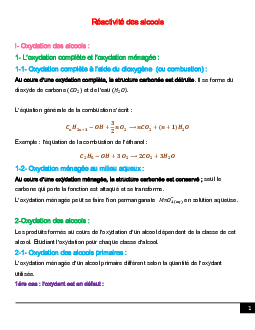 Les groupes caractéristiques en chimie organique - La réactivité des alcools