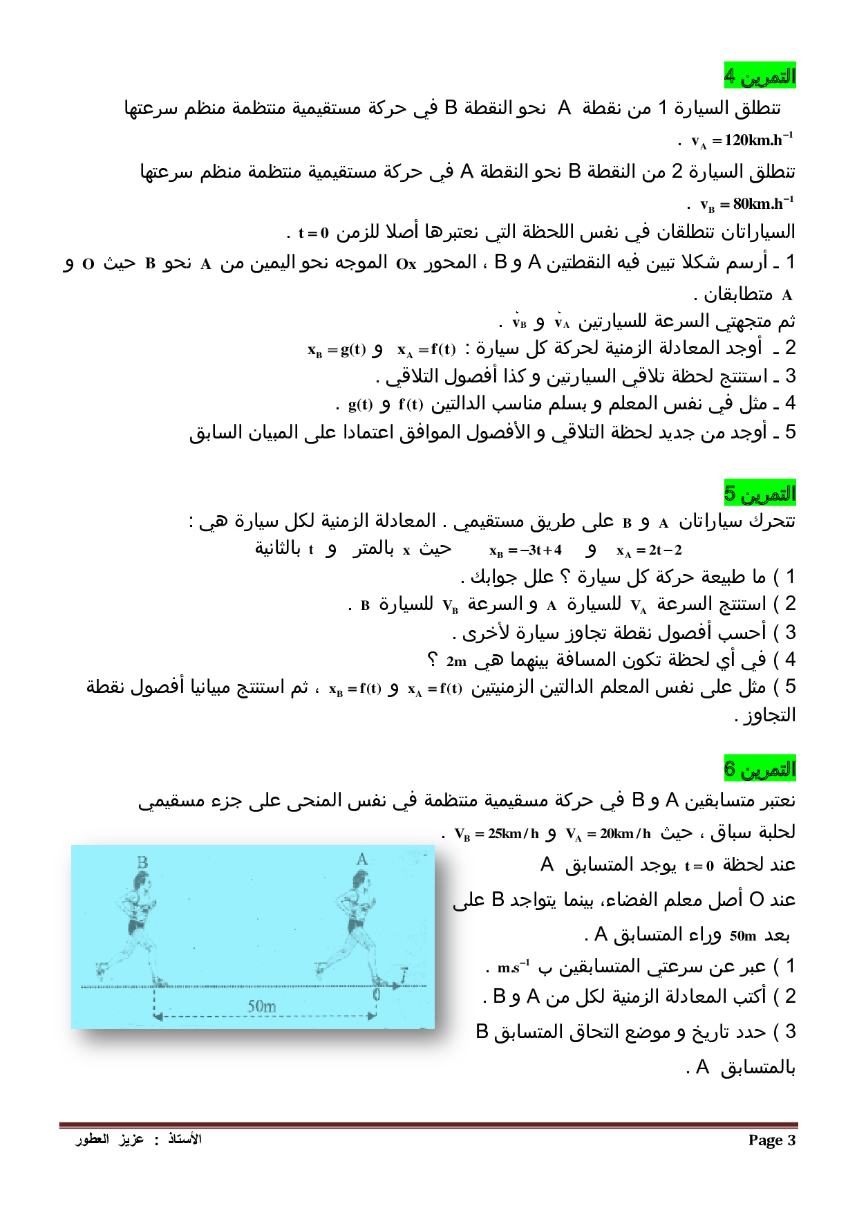الحركة - تمارين غير محلولة 3