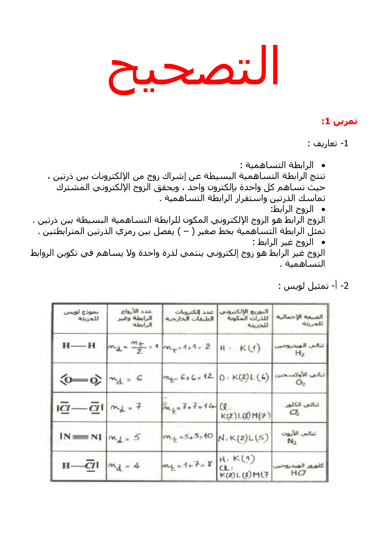 هندسة بعض الجزيئات - تصحيح سلسلة التمارين 1
