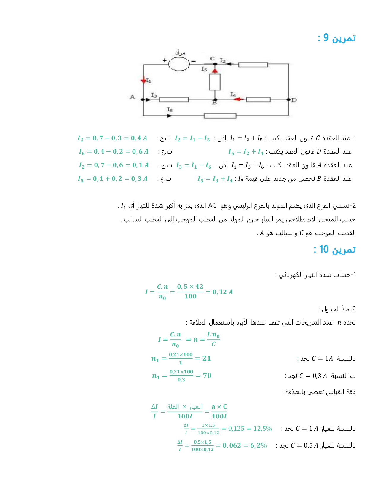 التيار الكهربائي المستمر - تصحيح سلسلة التمارين 2