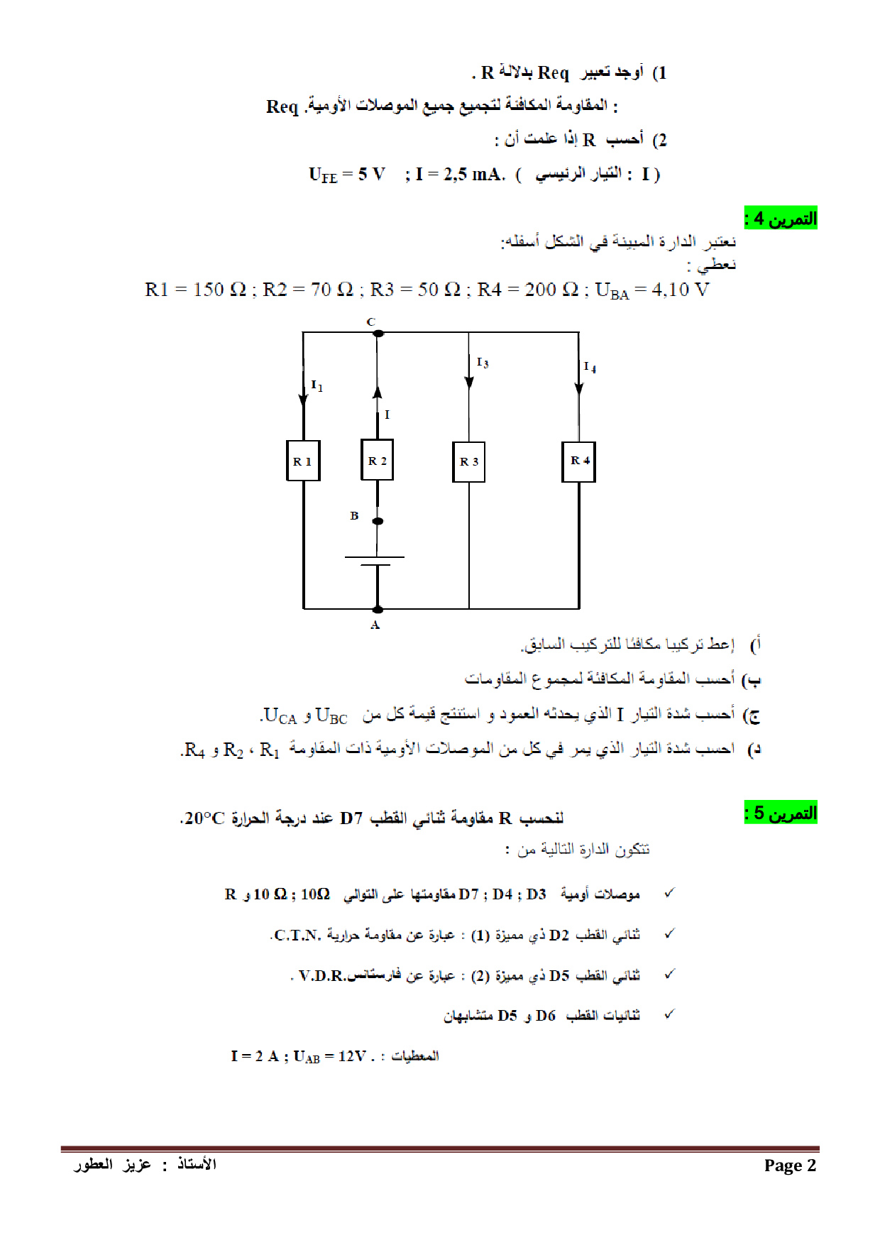 مميزات بعض ثنائيات القطب غير النشيطة - تمارين غير محلولة 2