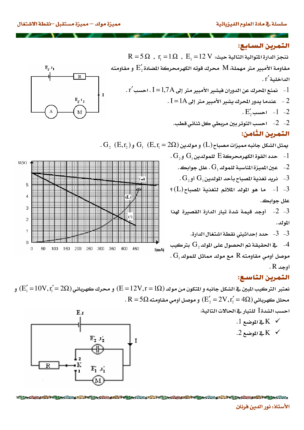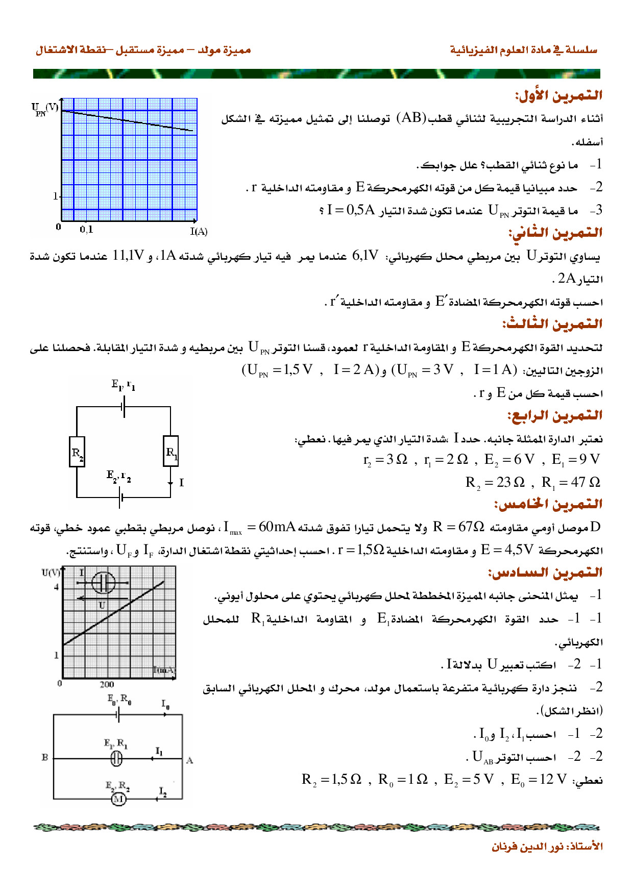 مميزة ثنائي القطب النشيط - تمارين غير محلولة 1