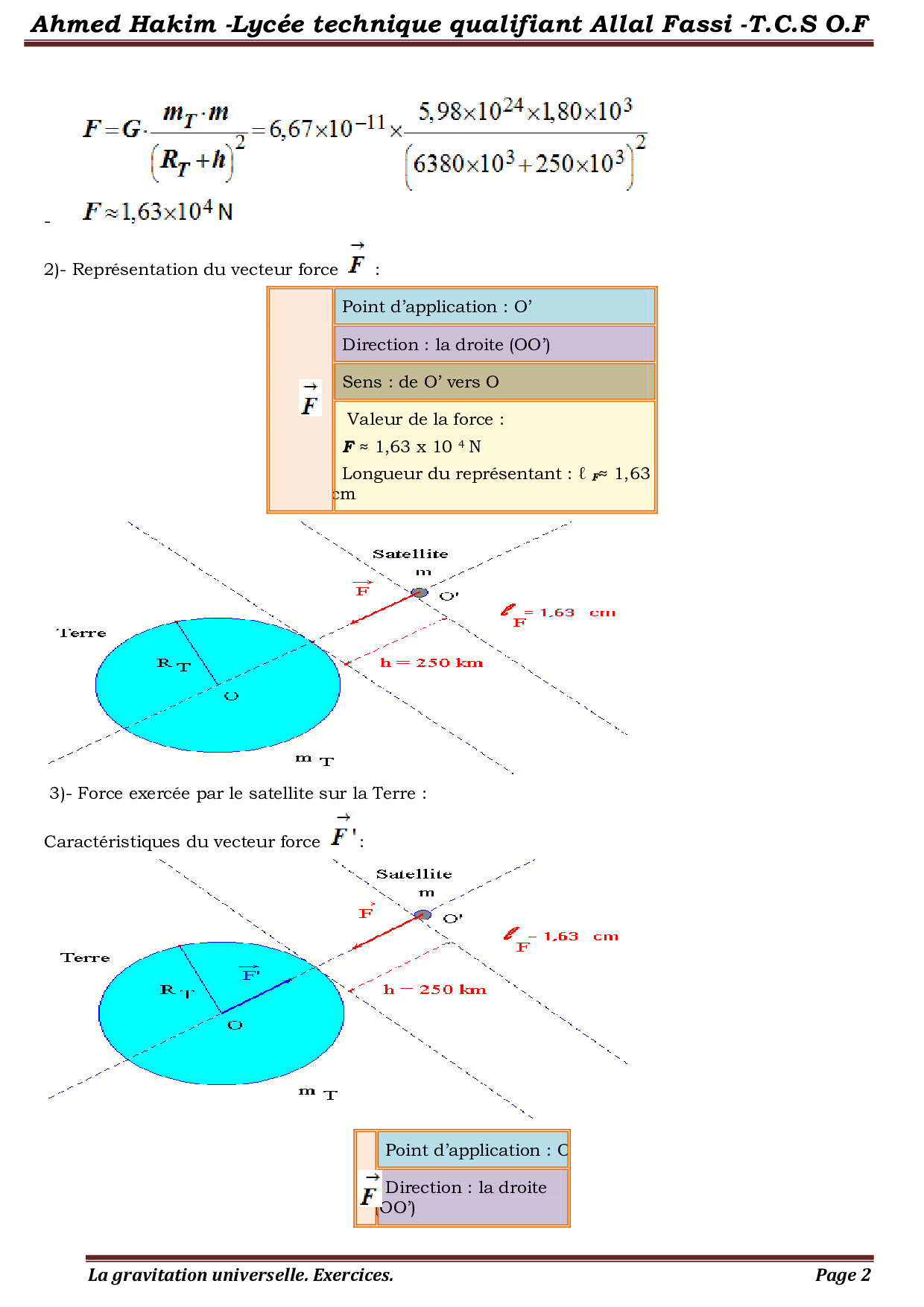La gravitation universelle - Corrigé série d'exercices 2