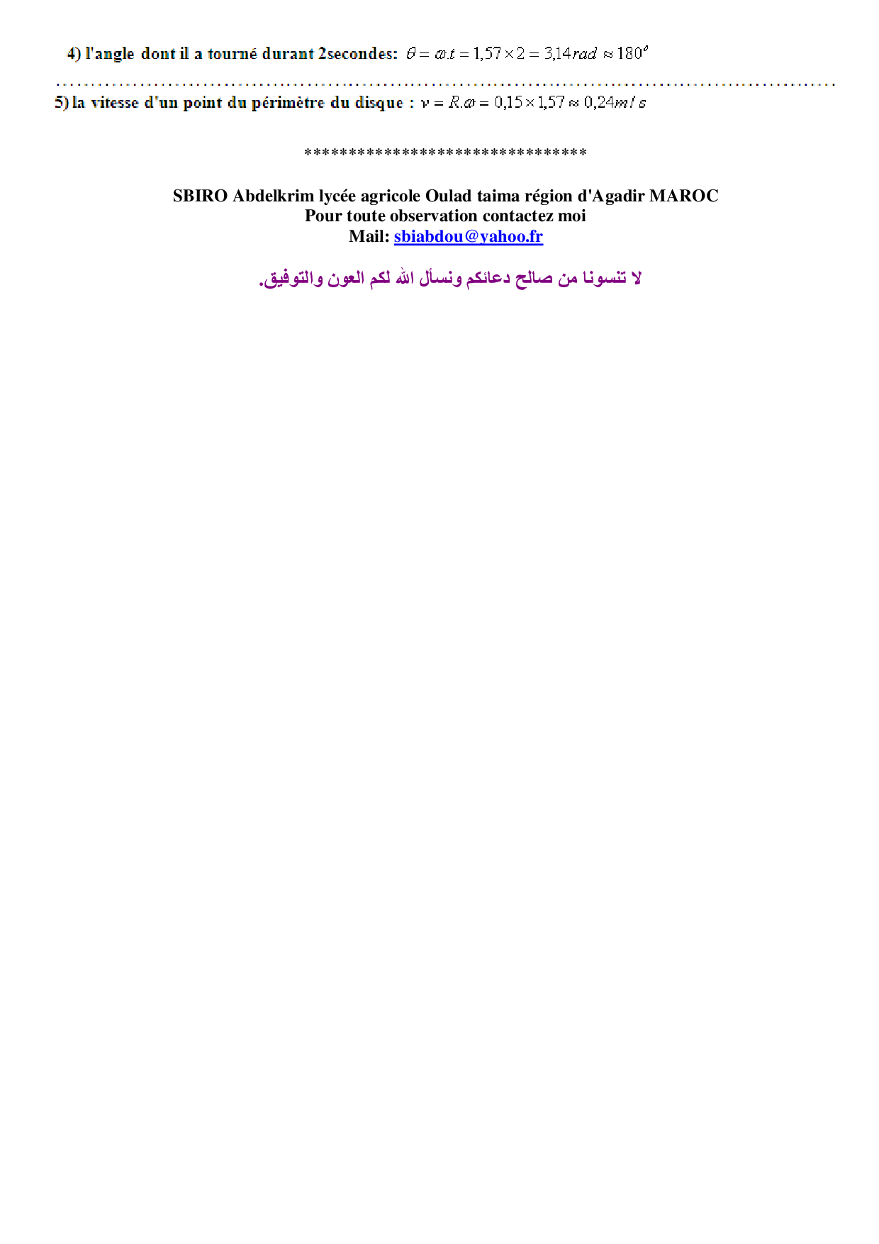 Le mouvement - Corrigé série d'exercices 1
