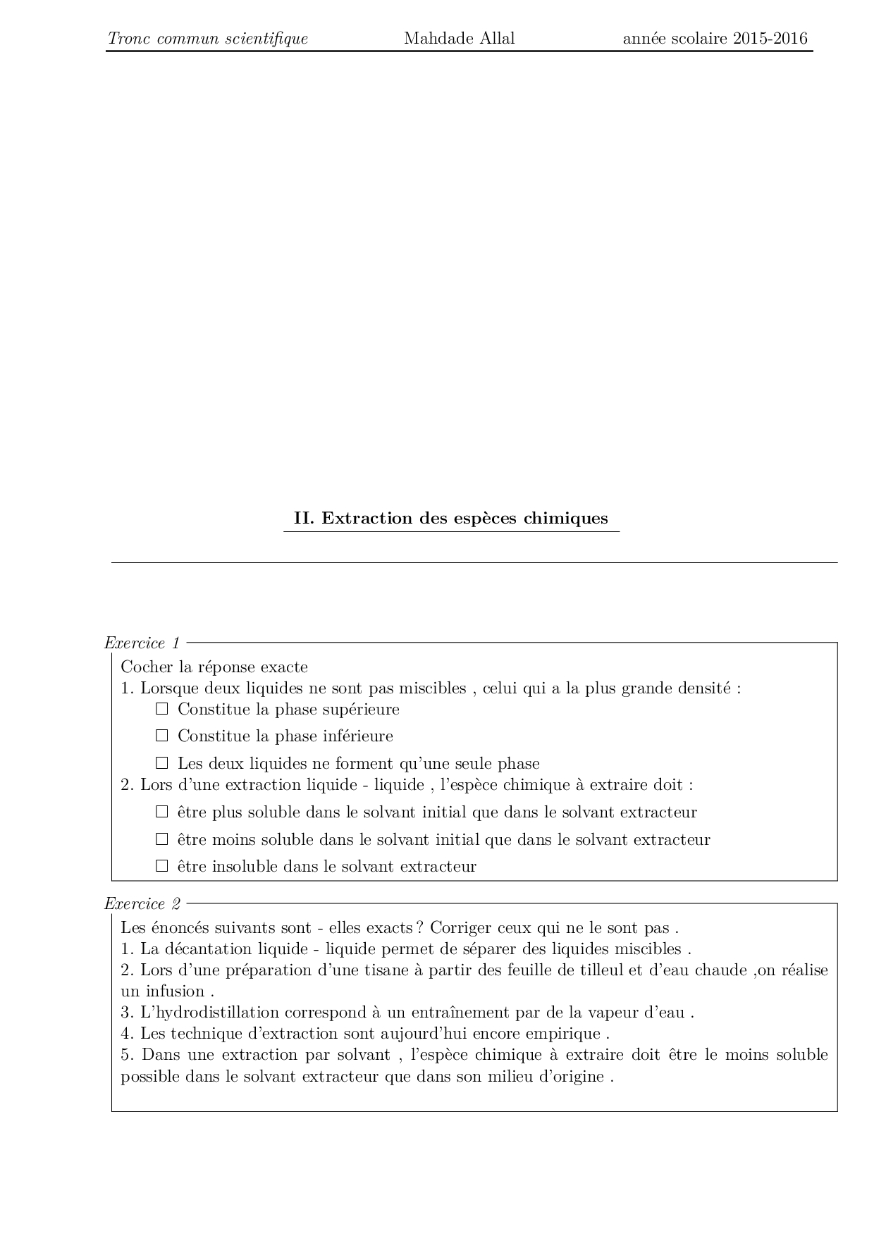 Extraction, séparation et identification des espèces chimiques - Exercices non corrigés 5