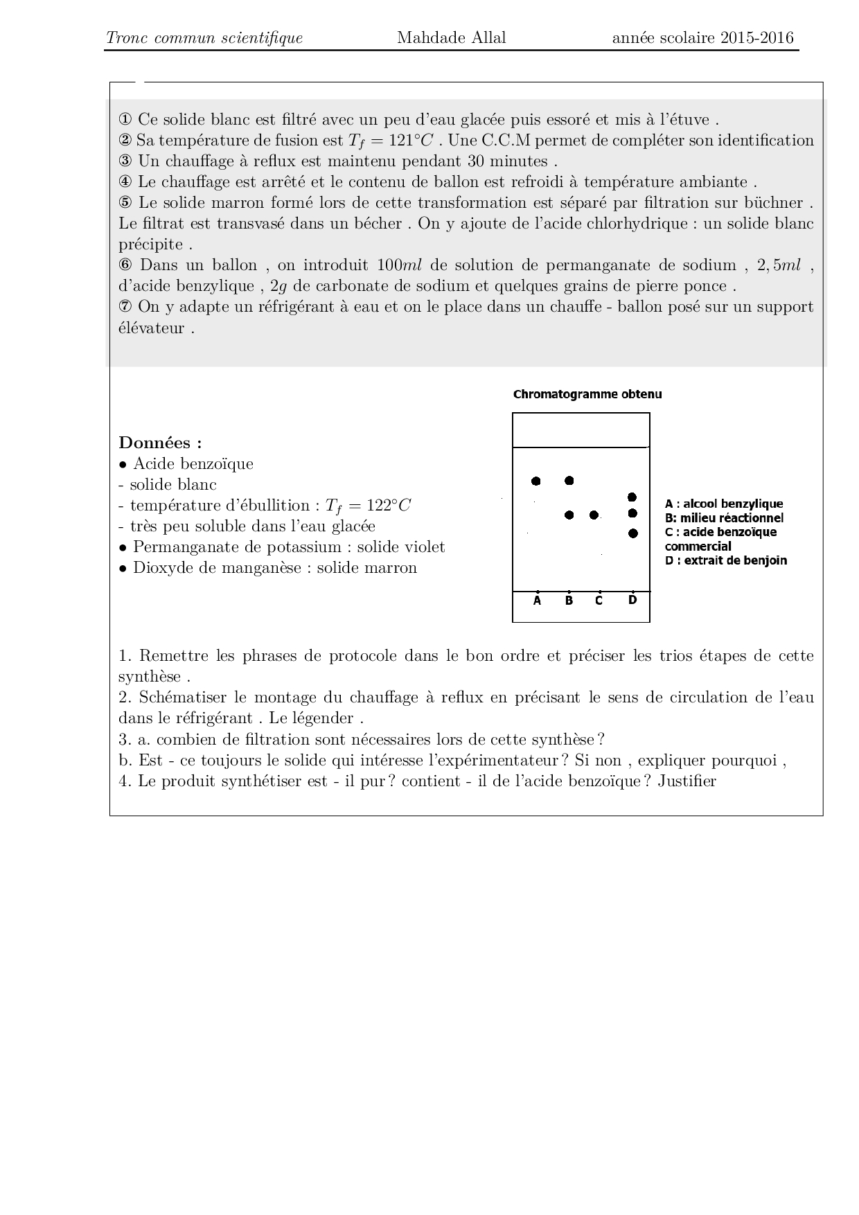 Synthèse des espèces chimiques - Exercices non corrigés 3