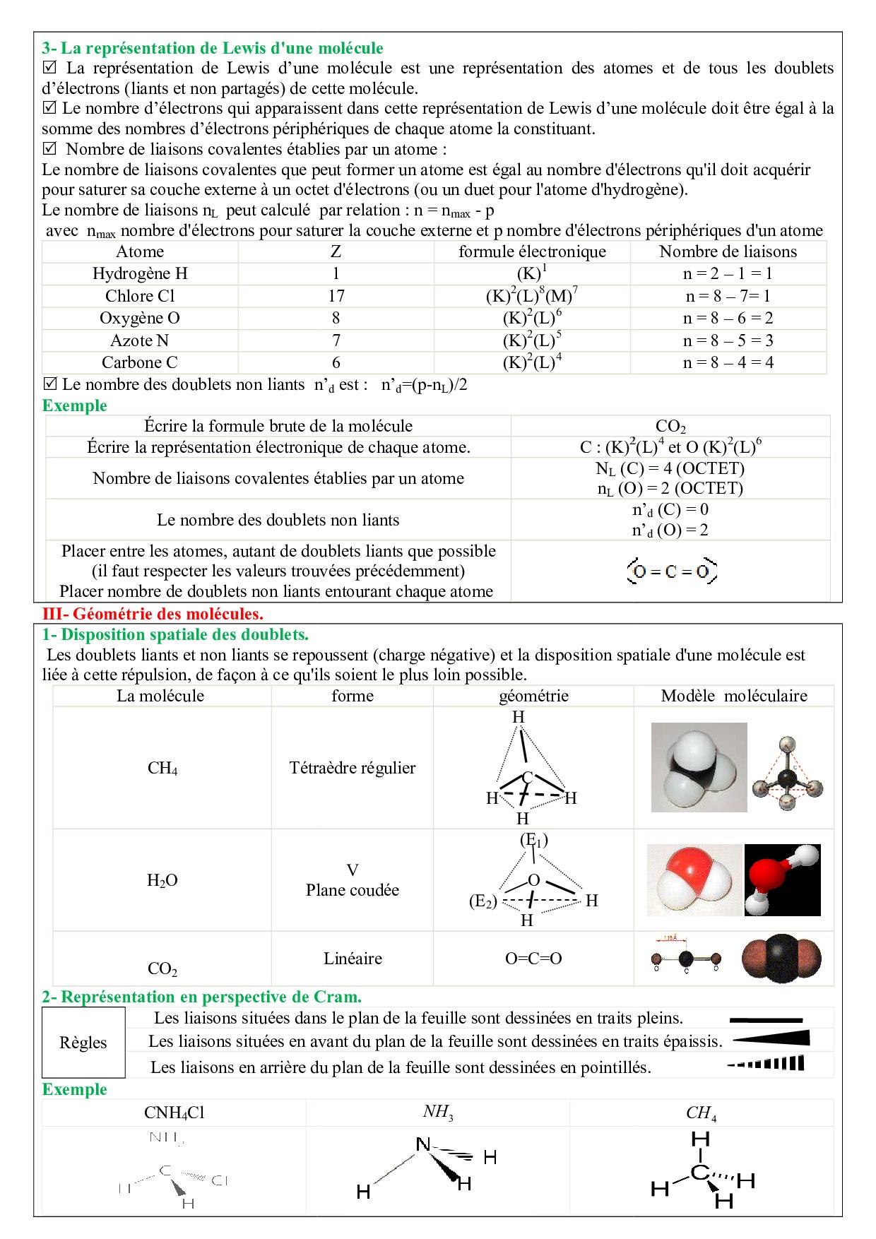 La géométrie de quelques molécules - Résumé de cours 1