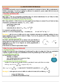 La gravitation universelle - Résumé de cours 1