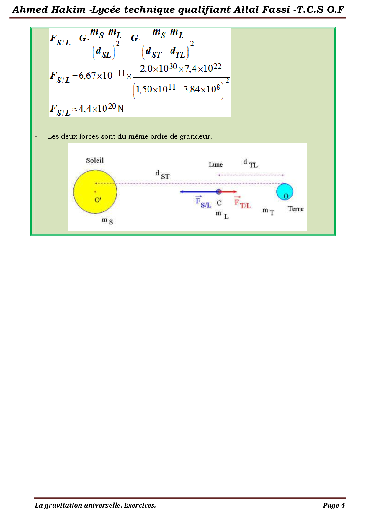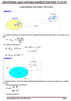 La gravitation universelle - Corrigé série d'exercices 2