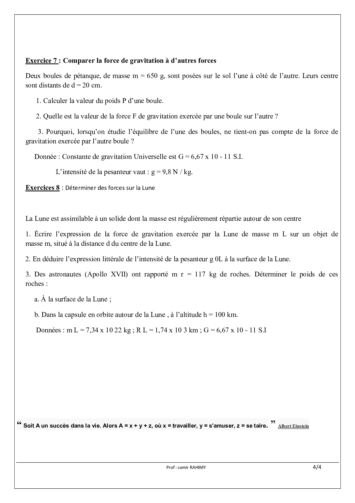 La gravitation universelle - Exercices non corrigés 4
