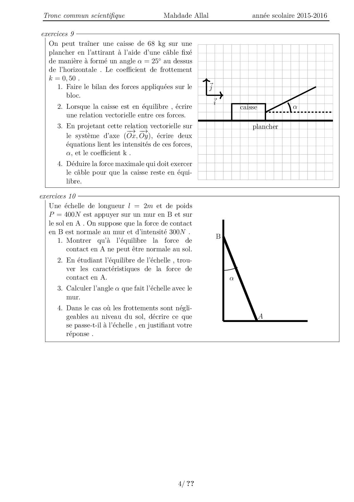 Équilibre d'un corps sous l'action de 3 forces - Exercices non corrigés 1